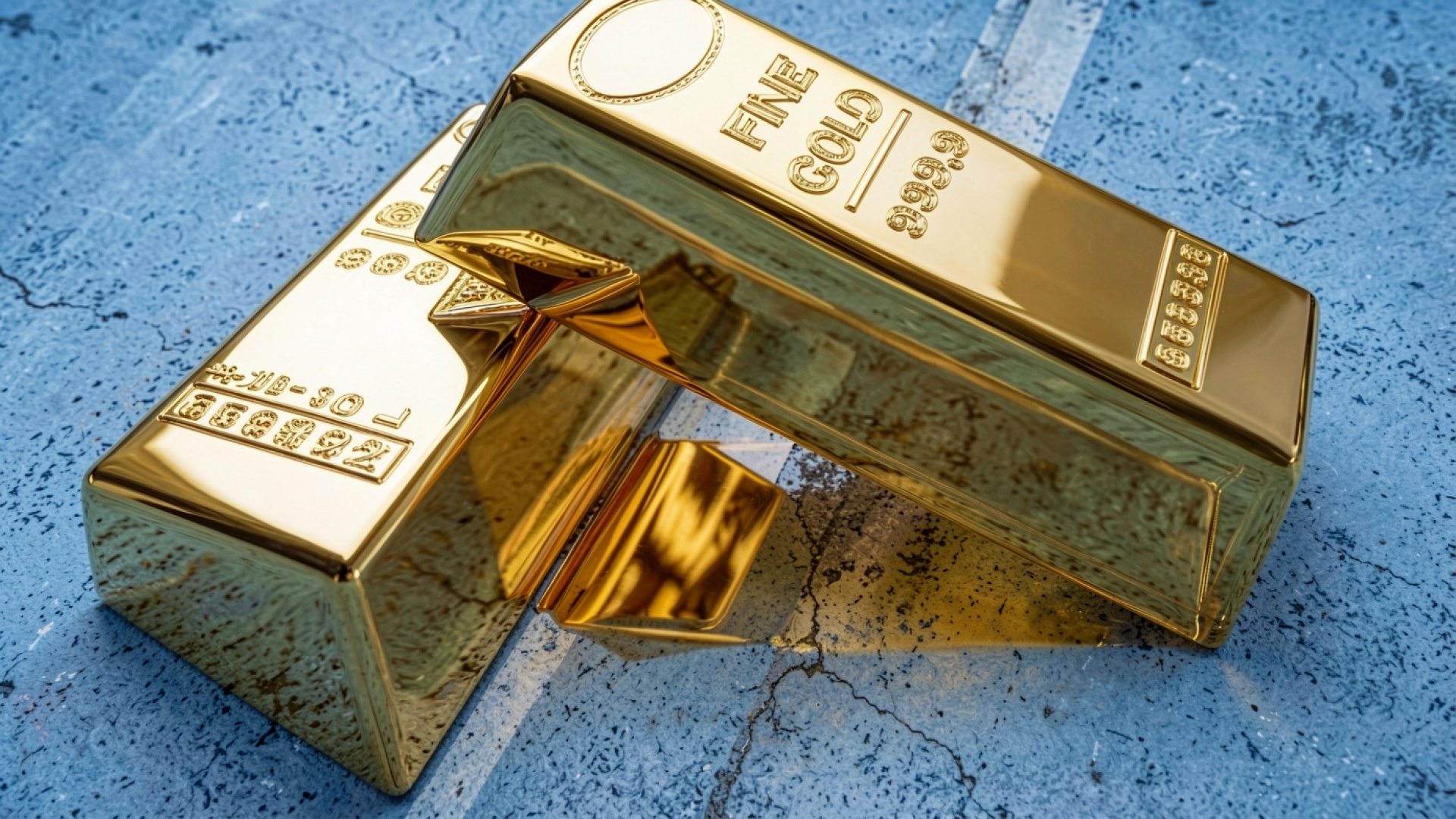 Золотые слитки на сером бетонном фоне обои