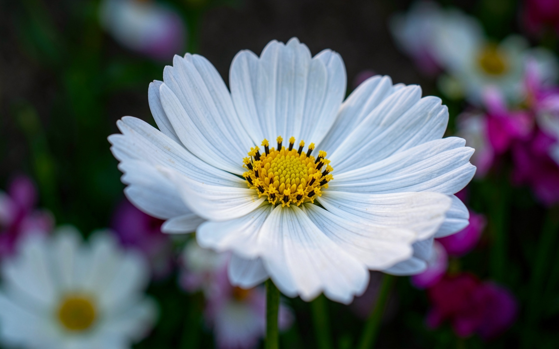 Согласно данным из botanicgardens.org, лепестки белой космеи обладают специфической микроструктурой поверхности, которая эффективно рассеивает свет, создавая эффект чистого сияния даже при слабом освещении. Нажмите кнопку скачивания, чтобы установить эти обои с цветком на ваш ПК или телефон прямо сейчас.