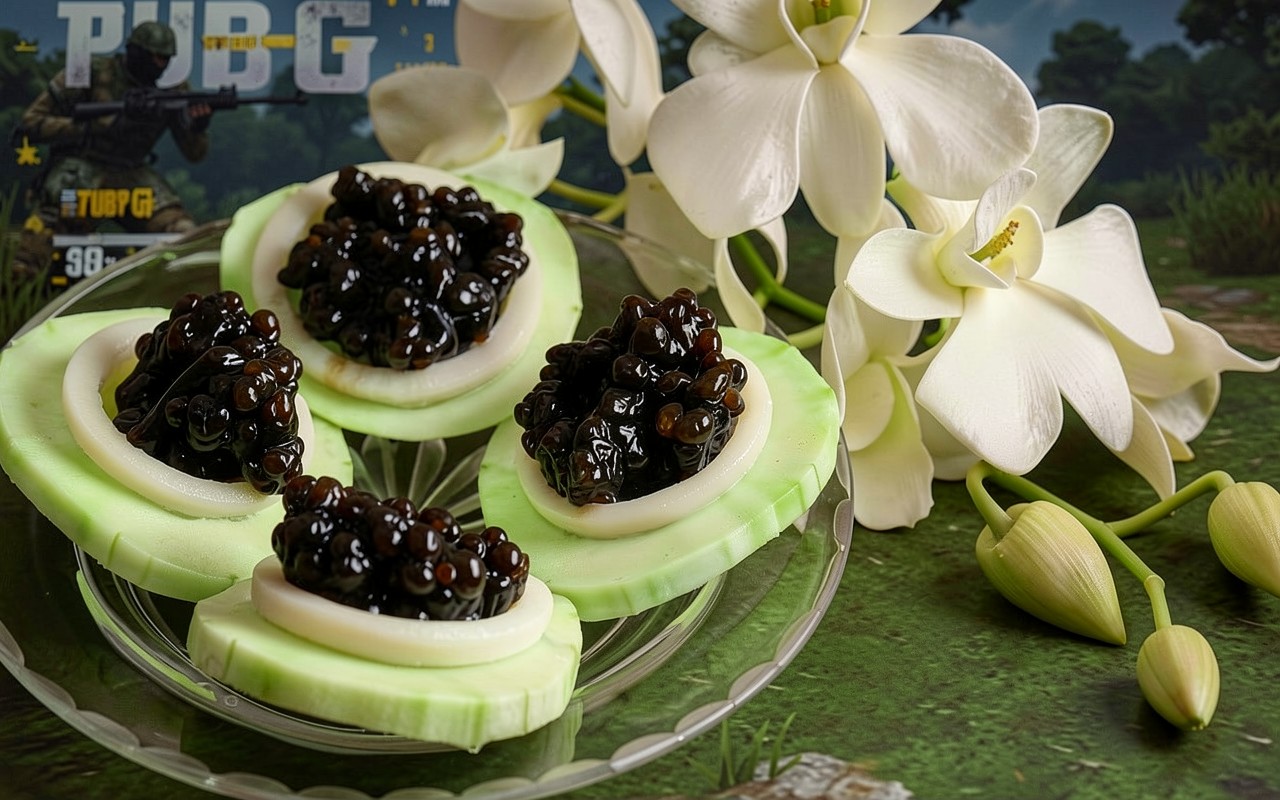 На нашем сайте вы можете скачать JPG файл обоев 'Черная икра на огурцах с белыми цветами', и вот почему это важно: только здесь оригинальное сжатие с минимальными потерями.