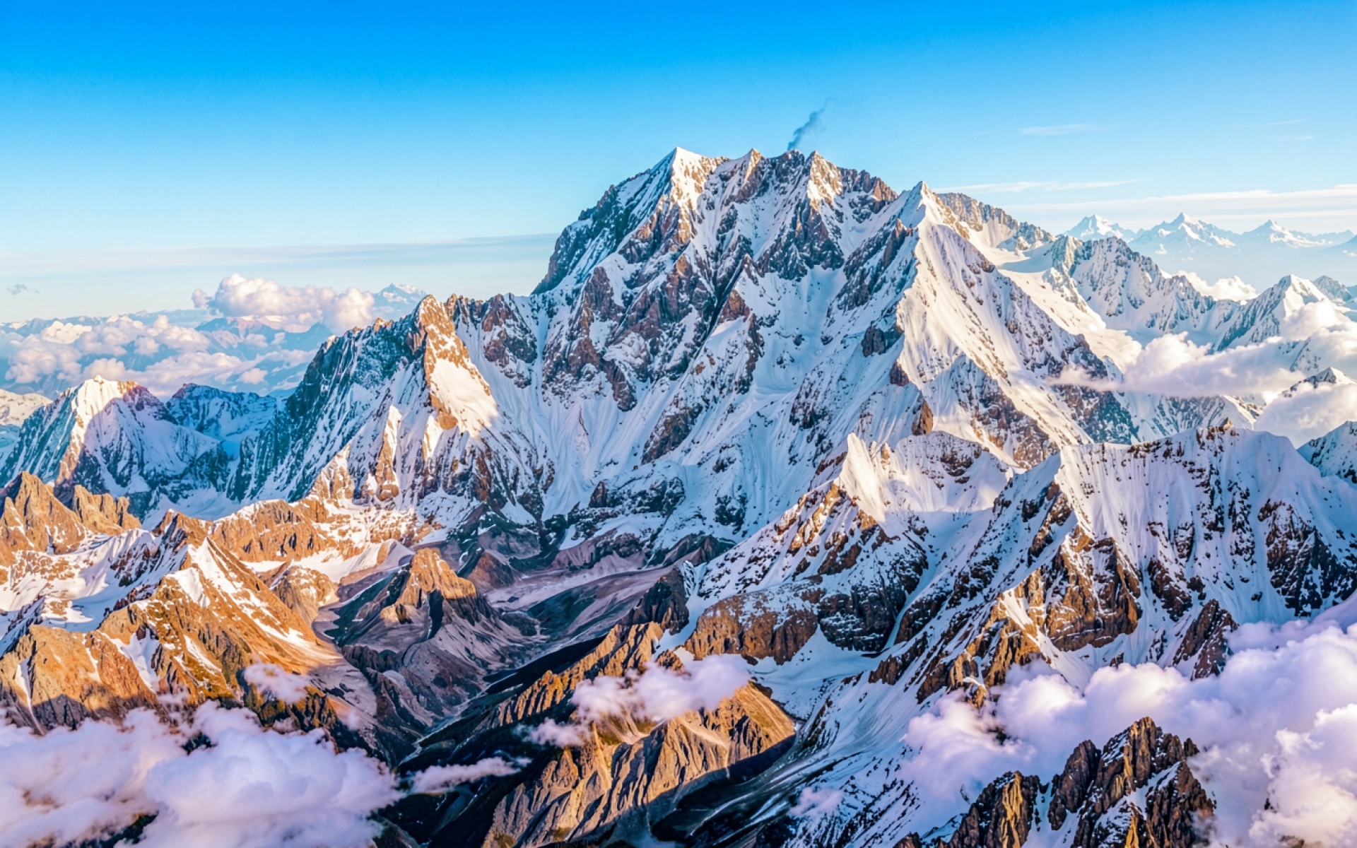 На нашем сайте вы можете получить JPG файл обоев 'Снежные вершины гор в яркий солнечный день', и вот почему это важно: здесь нет полос градиента из-за низкого битрейта.