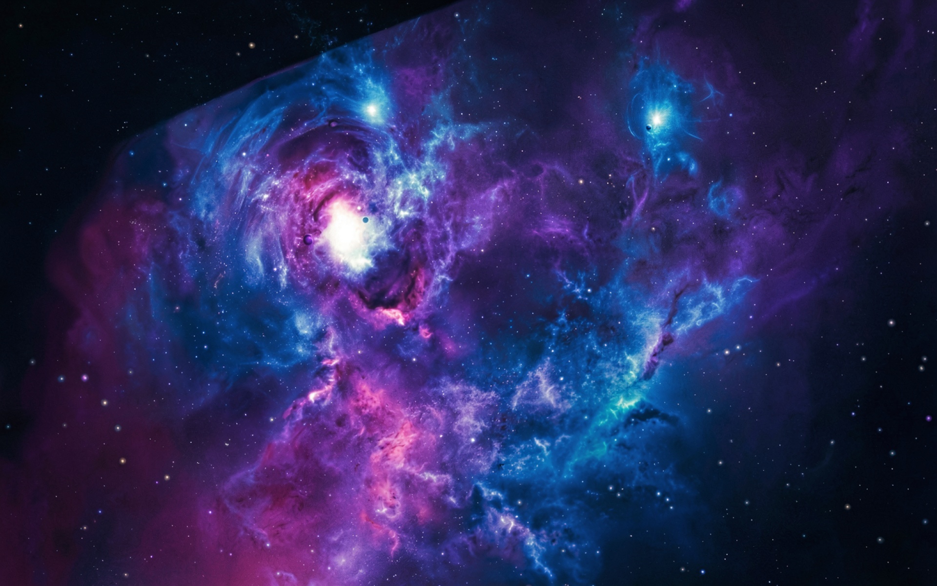 Космическая туманность в синих и фиолетовых тонах обои