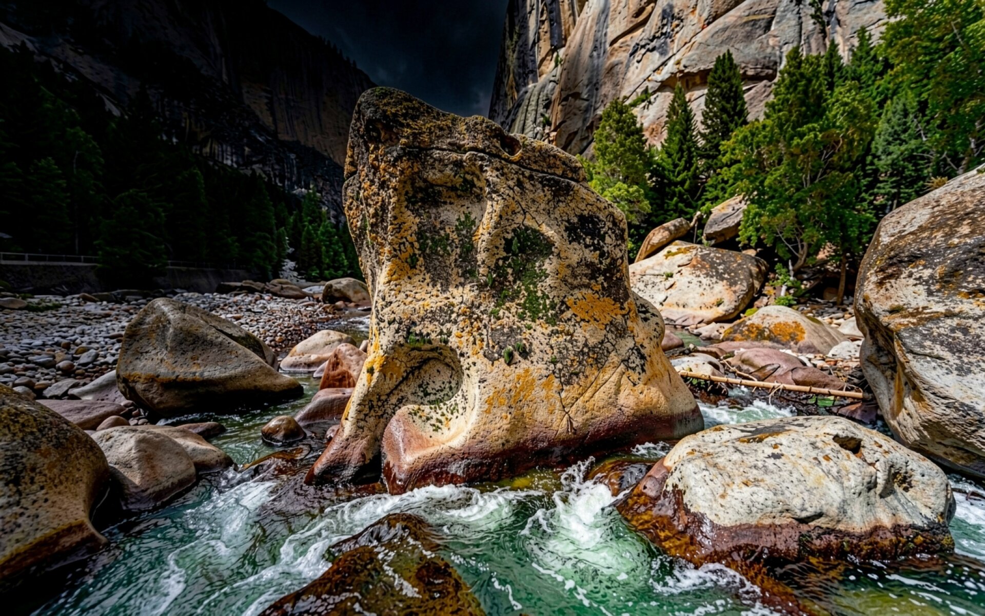 Согласно данным geology.com, гранит состоит преимущественно из кварца и полевого шпата, что обеспечивает высокую устойчивость породы к эрозии под воздействием быстрого течения воды в горных реках. Нажмите кнопку скачивания, чтобы установить эти обои с валуном на ваш ПК или телефон прямо сейчас.
