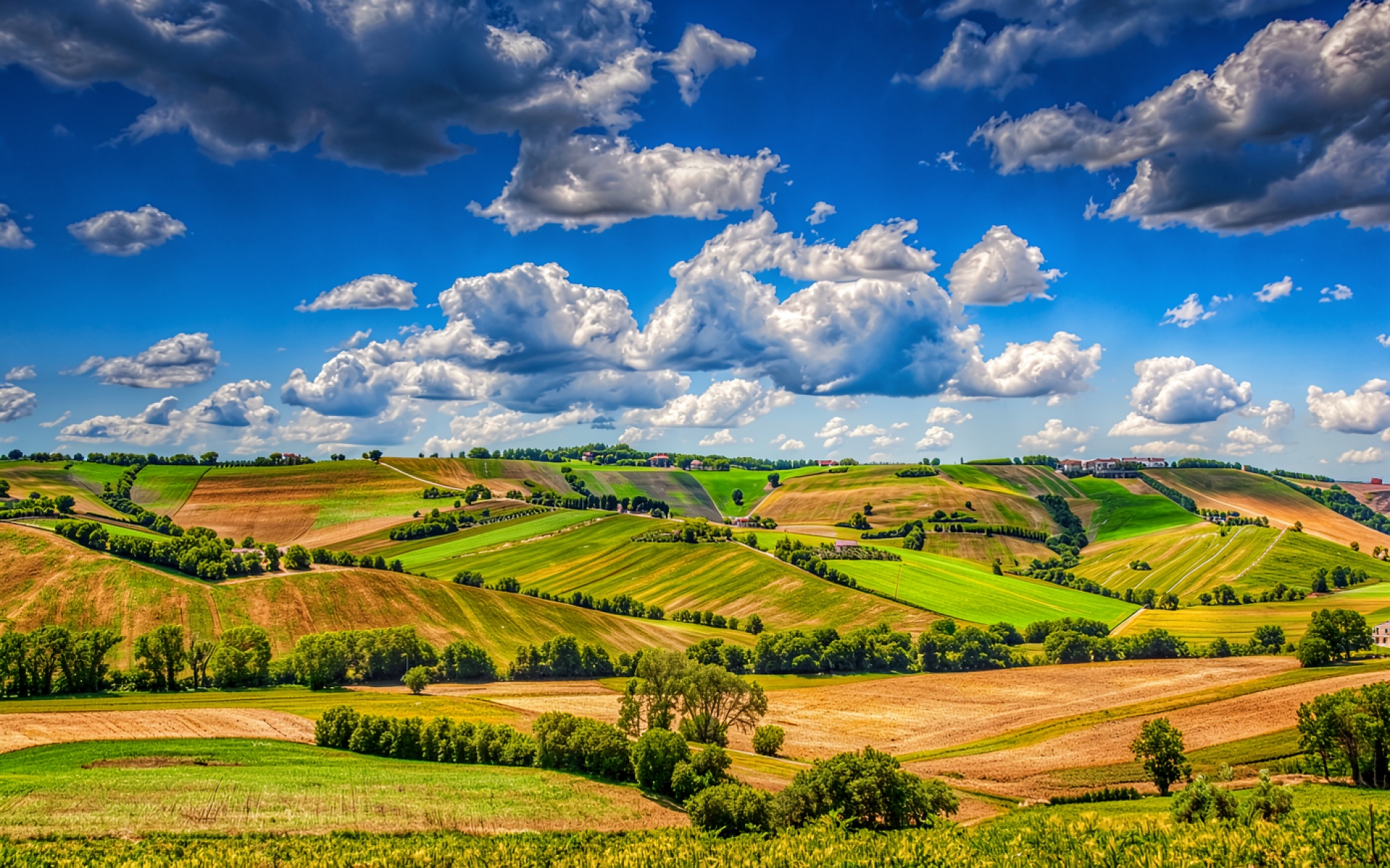 Доступны для скачивания JPG обои 'Летний пейзаж холмов Тосканы с облаками'. Почему стоит скачать их? Только здесь представлена оригинальная компрессия с минимальными потерями.