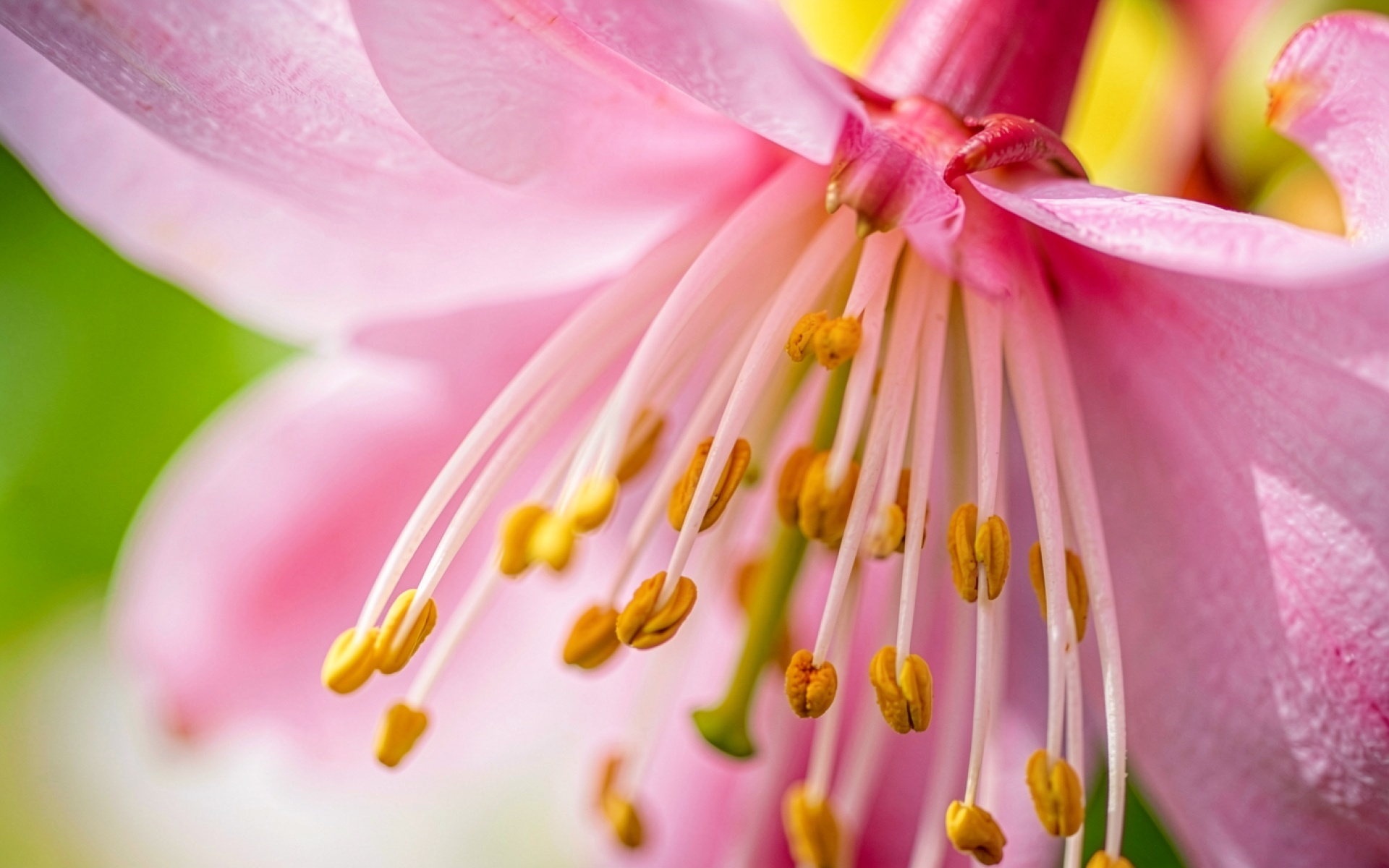 Розовый цветок с желтыми тычинками макросъемка обои