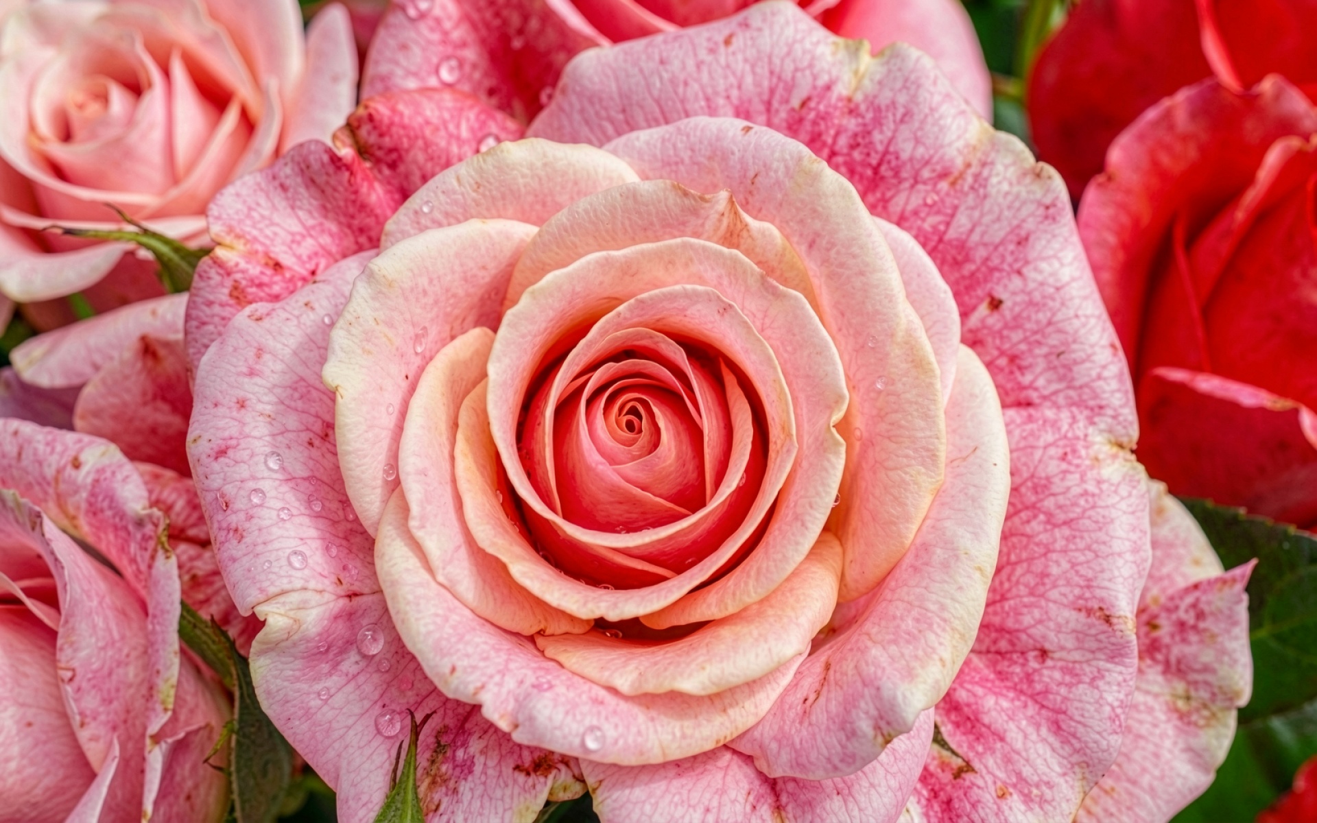Технические параметры файла включают разрешение 4K, профиль sRGB и высокую плотность пикселей, что исключает артефакты при масштабировании. Цветовая палитра базируется на градиентах розового и кремового оттенков с акцентом на детализацию текстуры лепестков. Согласно данным botanicalgardens.org, структура лепестков роз оптимизирована для удержания влаги, что создает характерный эффект сферических капель росы, зафиксированный в этом кадре.