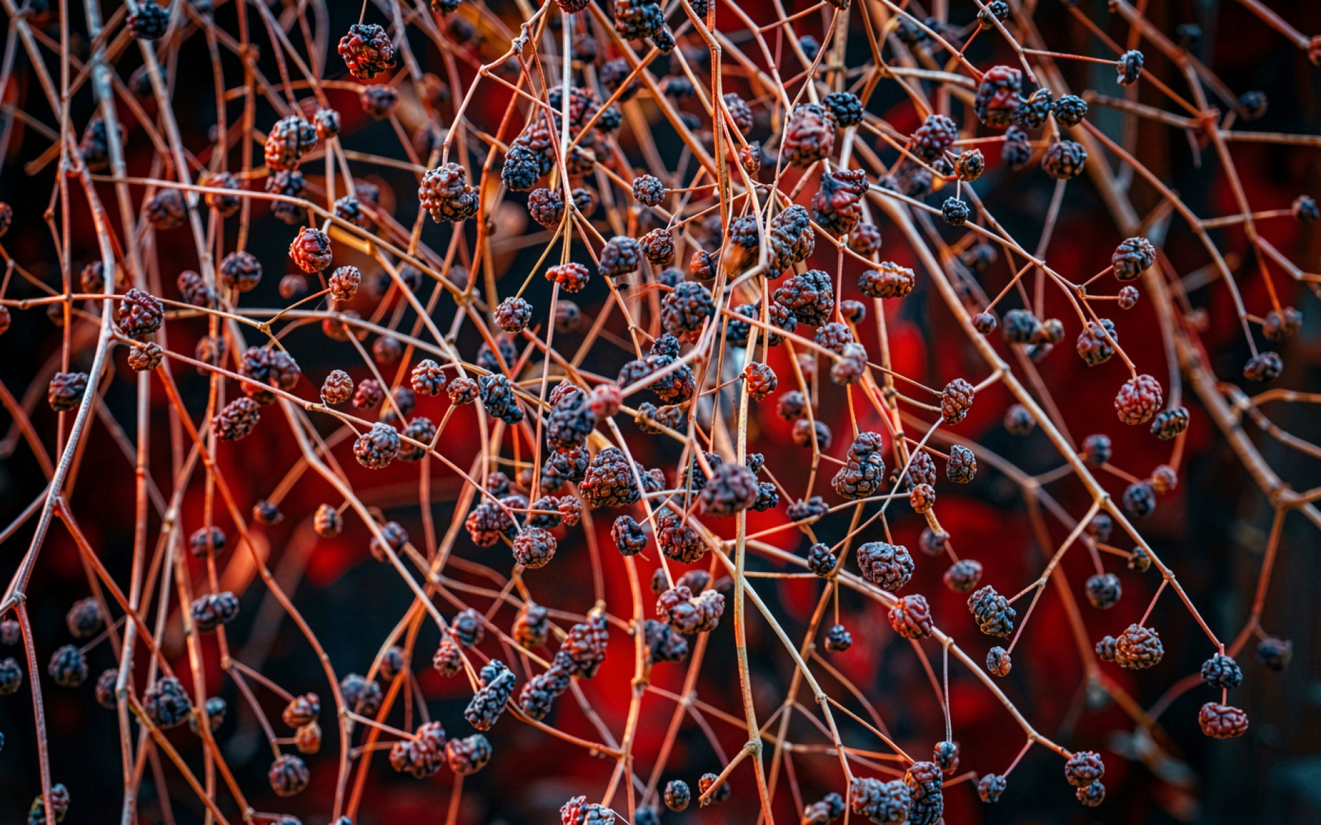 Сухие ягоды на ветках в красном свете обои