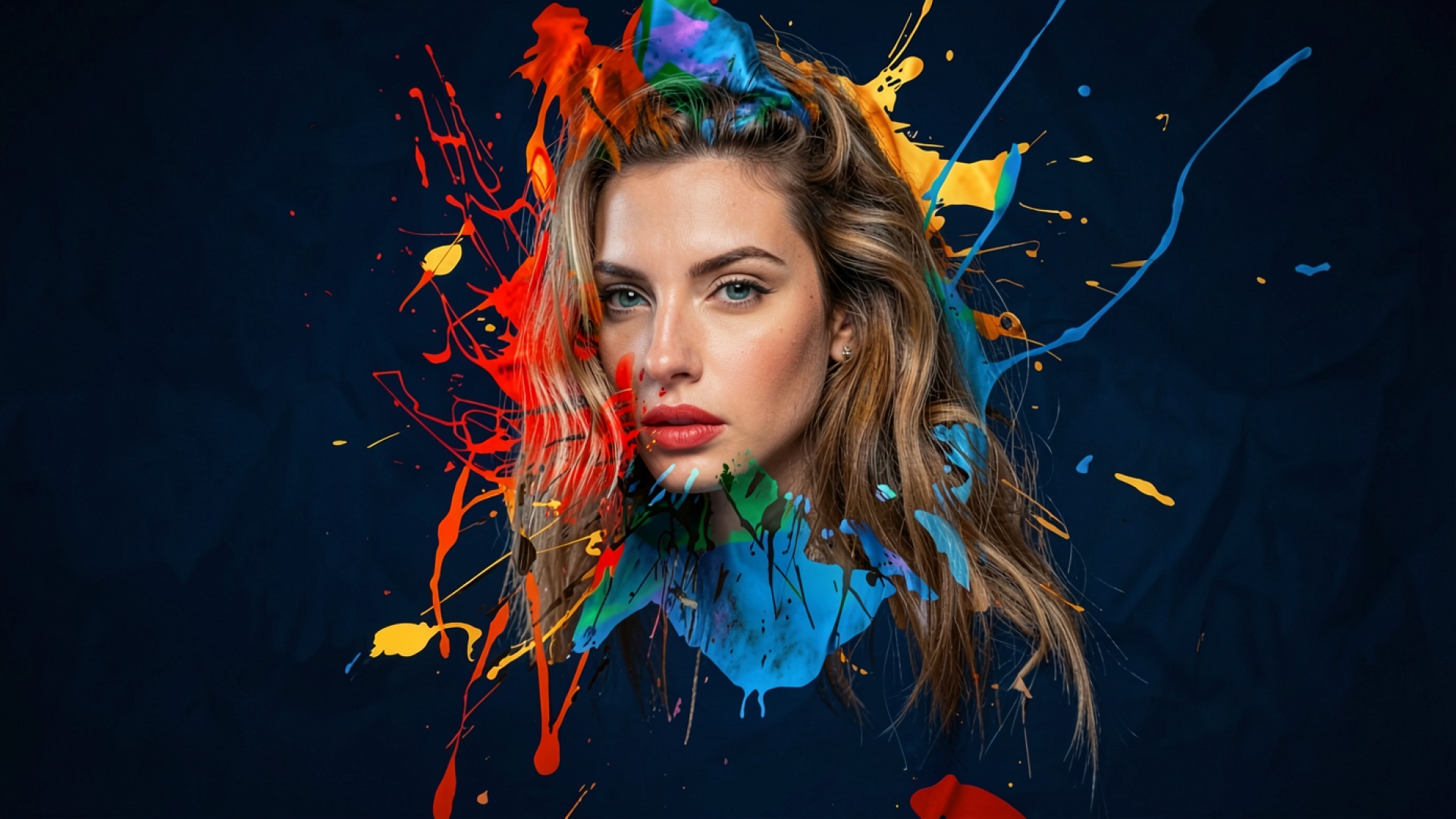 Портрет девушки с брызгами яркой краски обои