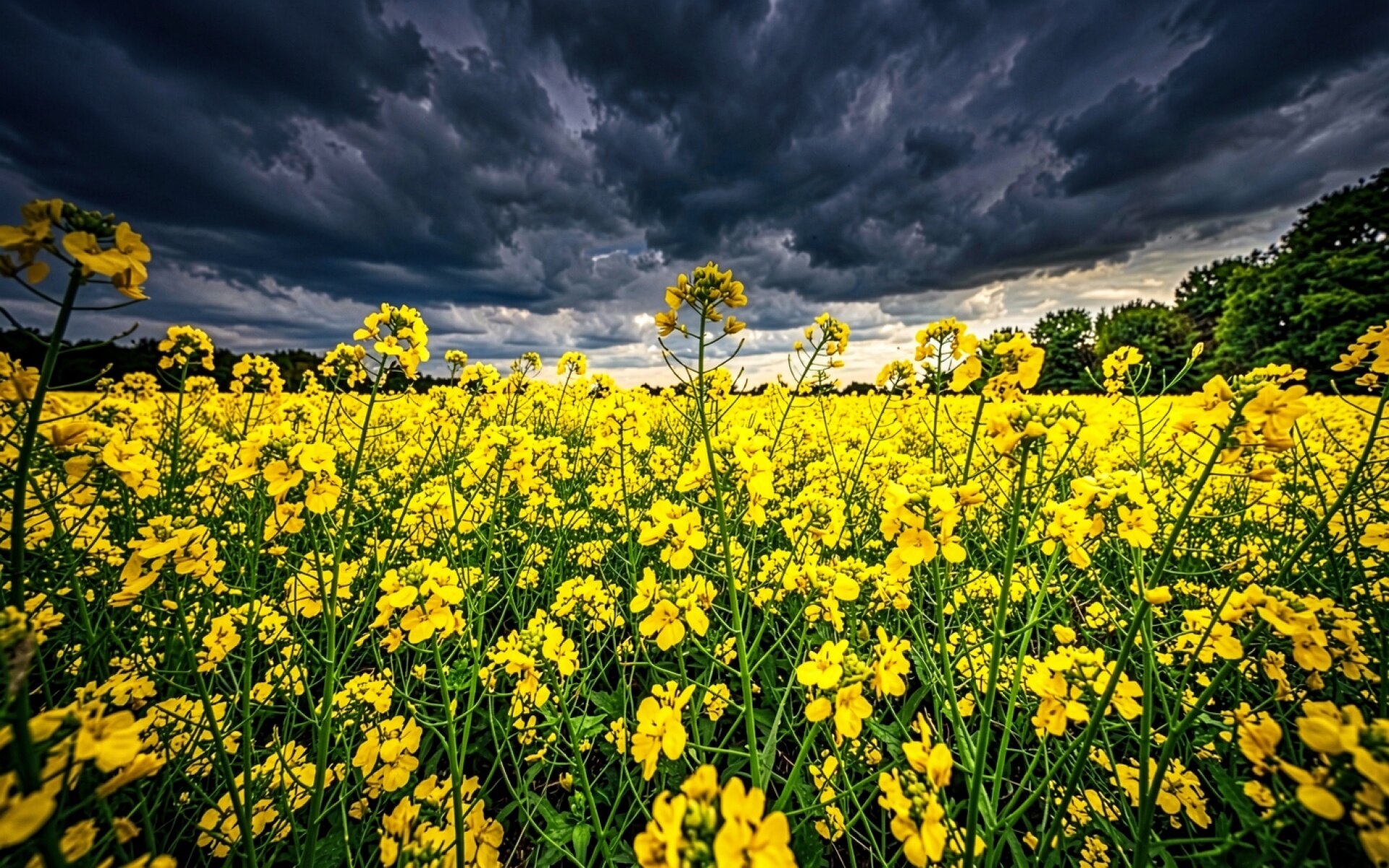 Загрузка JPG обоев Поле желтых рапсевых цветов под грозовым небом с нашего сайта необходима, так как только здесь представлена оригинальная компрессия с минимальными потерями.