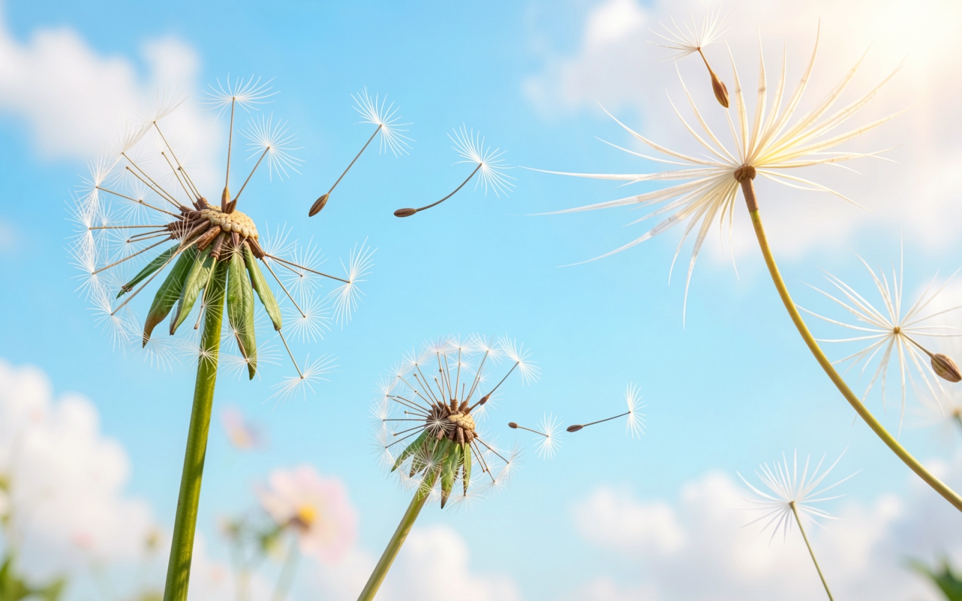 Одуванчики в небе светлый тон летняя эстетика обои