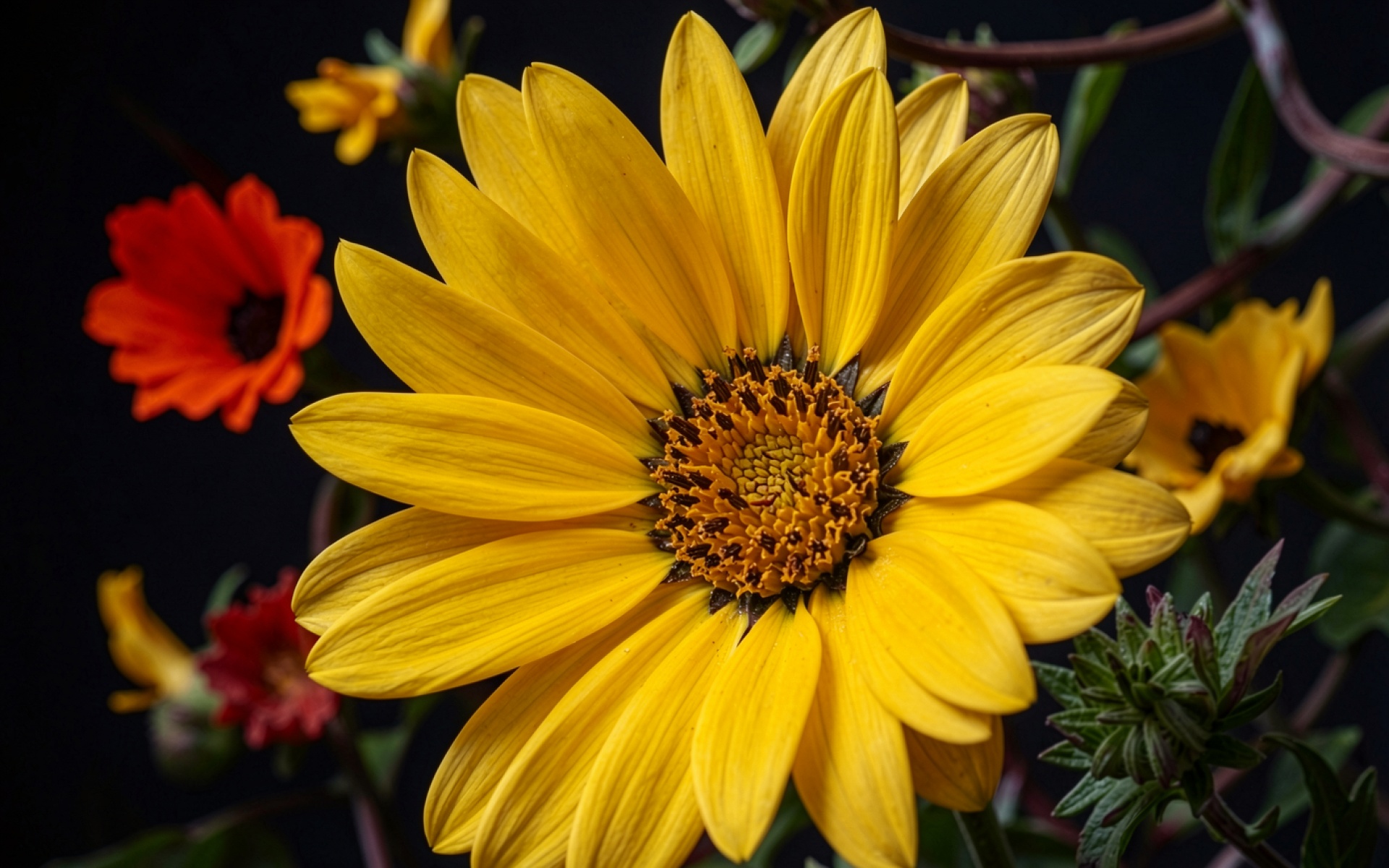 Желтый цветок газания на темном фоне обои