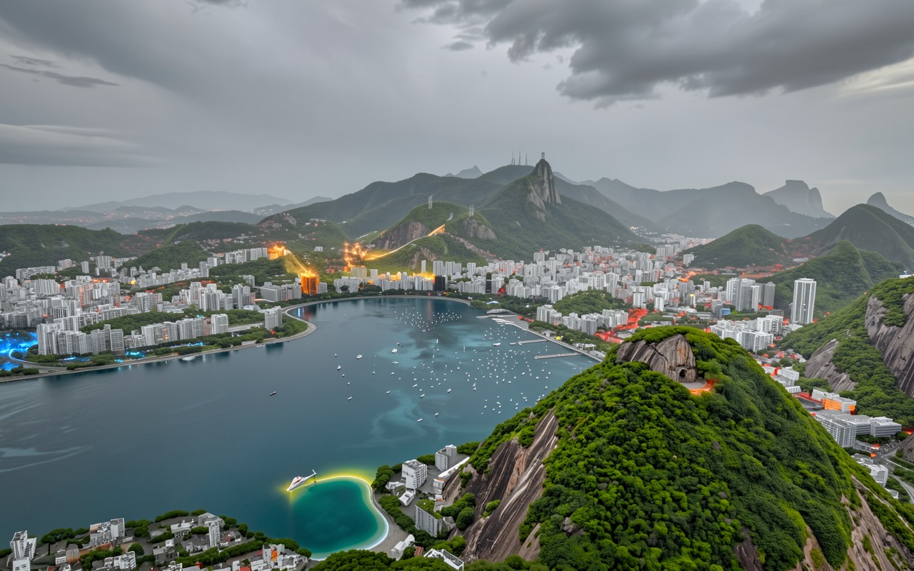 Согласно данным с nationalgeographic.com, уникальный рельеф Рио-де-Жанейро сформирован гнейсами и гранитами, которые из-за высокого содержания кварца приобретают характерный серый оттенок при низком освещении. Нажмите кнопку скачивания, чтобы установить эти обои с панорамой города на ваш ПК или телефон прямо сейчас.