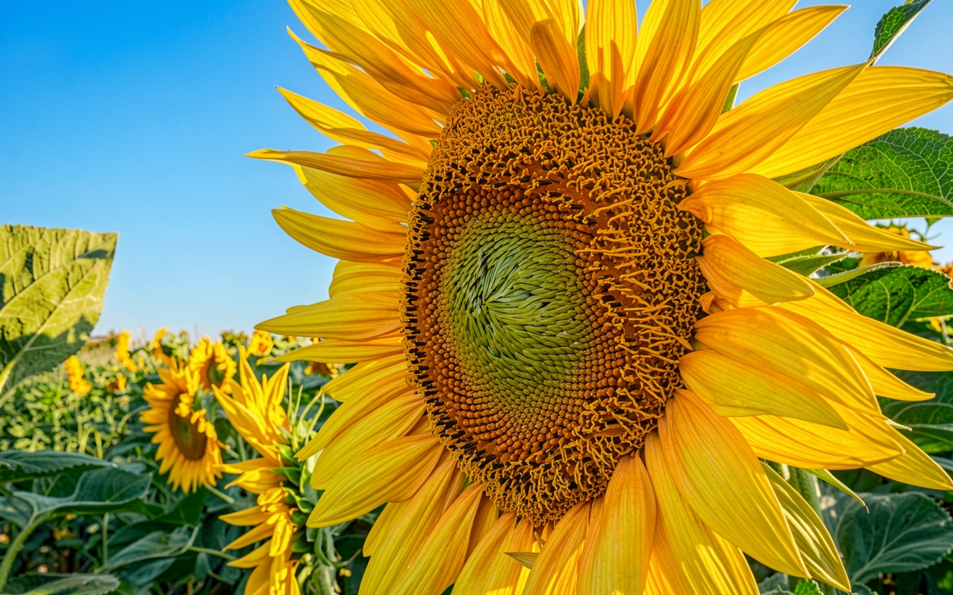 Согласно данным с botanicgardens.org, структура диска подсолнуха следует принципу золотого сечения, что позволяет максимально плотно разместить семена для оптимизации пространства и ресурсов растения. Нажмите кнопку скачивания, чтобы установить эти обои с подсолнухом на ваш ПК или телефон прямо сейчас.