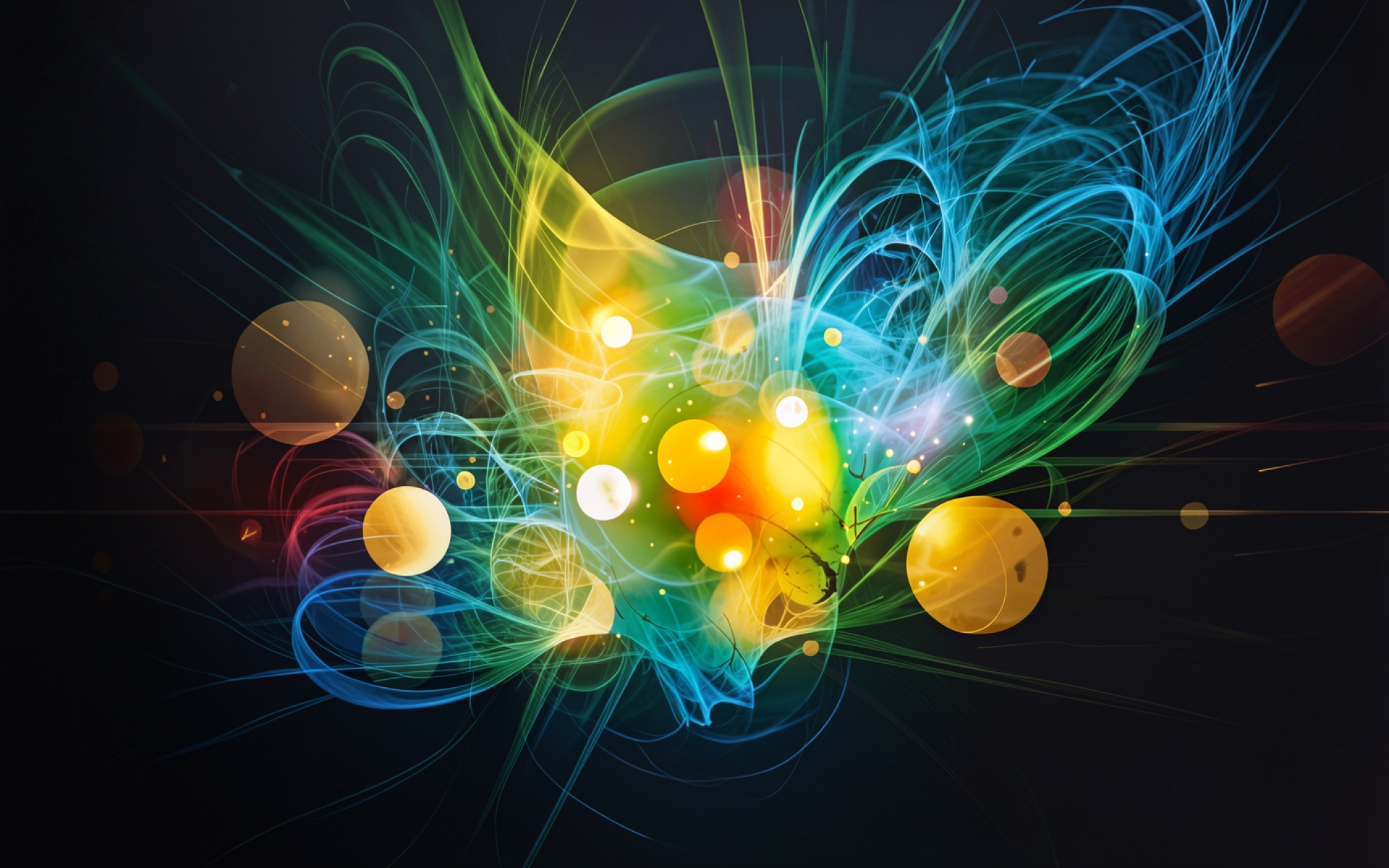 Изображение характеризуется сложной структурой световых линий и плавными градиентами от глубокого синего к яркому желтому. Текстуры напоминают переплетение оптоволоконных нитей, где каждый изгиб подчеркнут точечными бликами и мягким свечением. Контраст между темным фоном и насыщенными неоновыми акцентами создает объемный эффект, а распределение теней придает композиции динамику. На сайте доступен удобный предпросмотр перед скачиванием для оценки качества на экране.