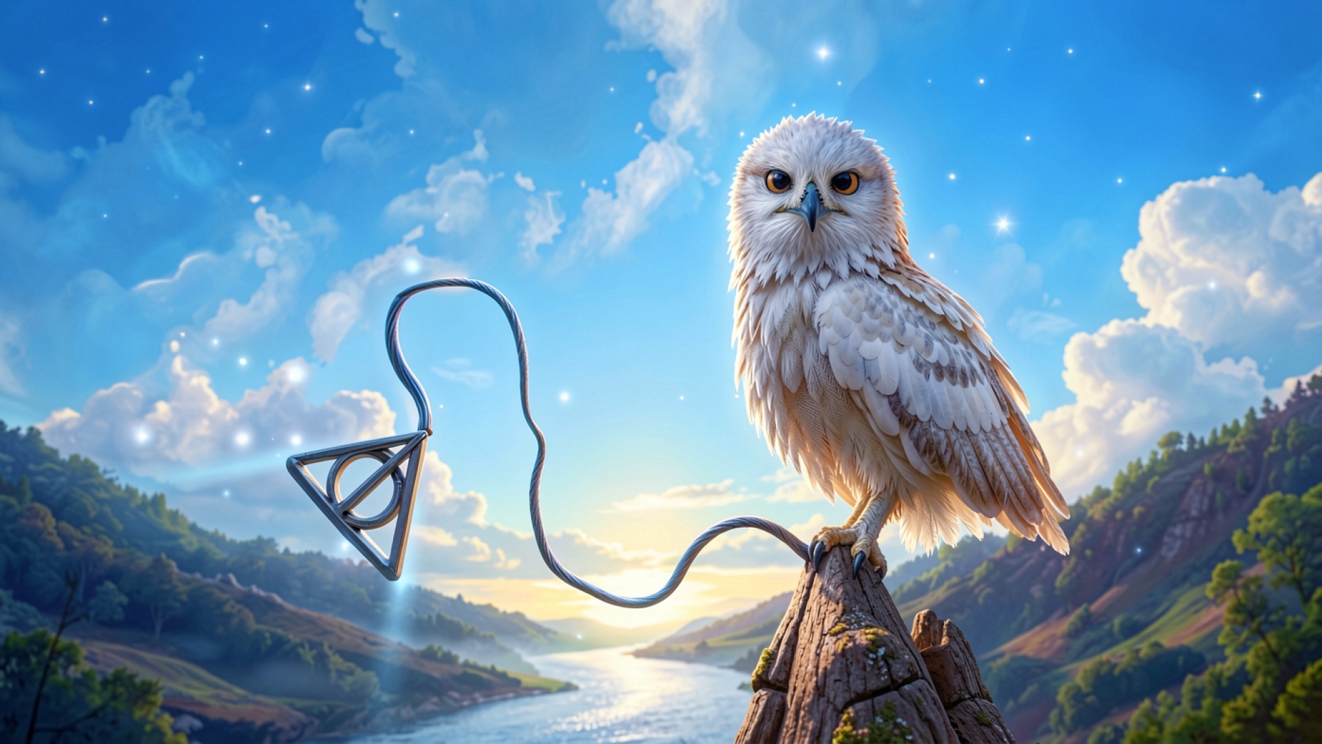Техническое исполнение кадра акцентирует внимание на детальной прорисовке оперения птицы и холодном блеске металла. Мягкий свет заходящего солнца создает плавные градиенты на фоне горного пейзажа, формируя выразительные блики на поверхности треугольника и глубокие тени в складках перьев. Контраст между органическими текстурами дерева и глянцевым металлом подчеркивает глубину сцены. На сайте доступен удобный предпросмотр перед скачиванием, чтобы оценить качество отображения на вашем экране.