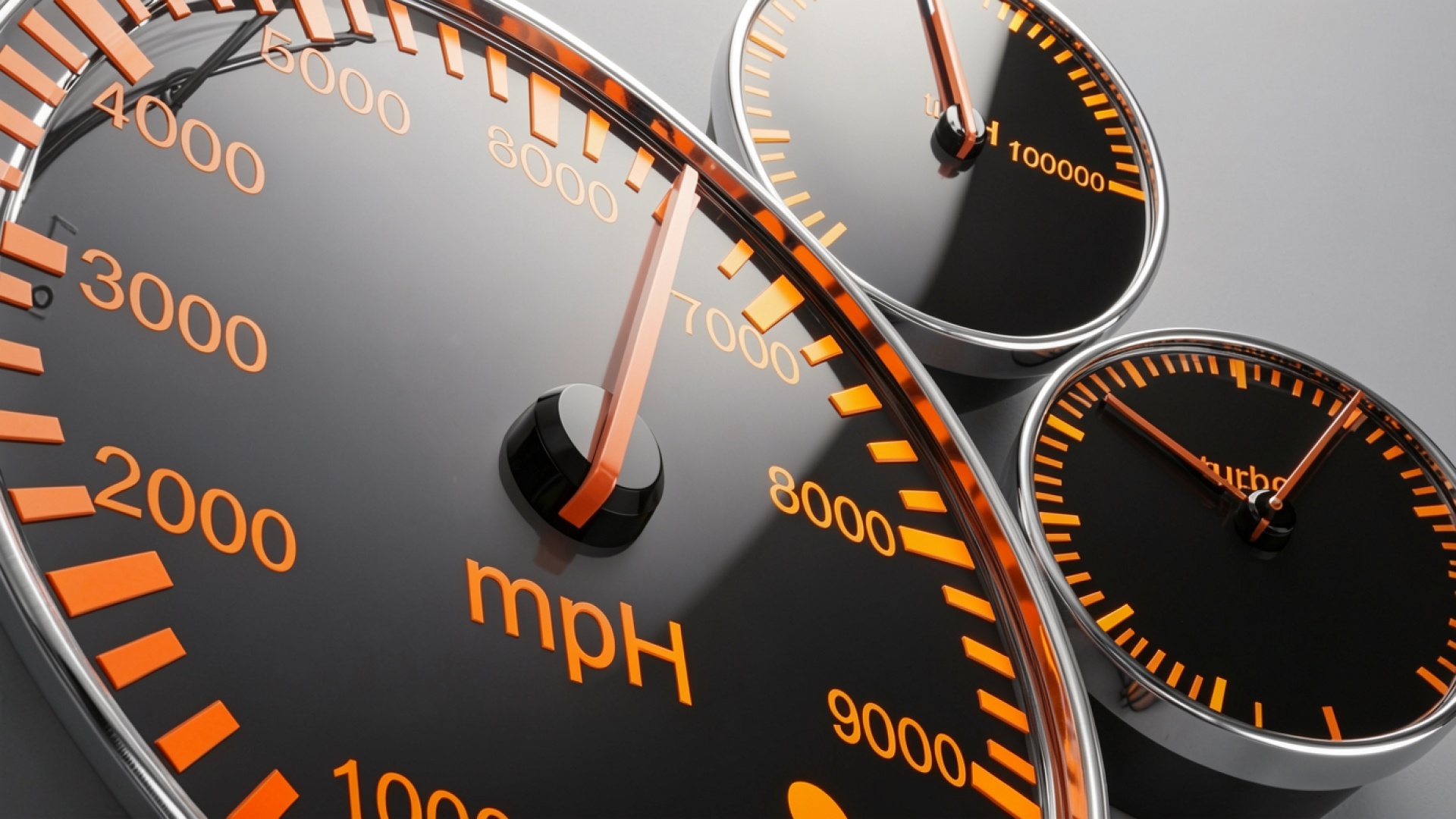 Автомобильные спидометры оранжевого цвета в сером интерьере обои