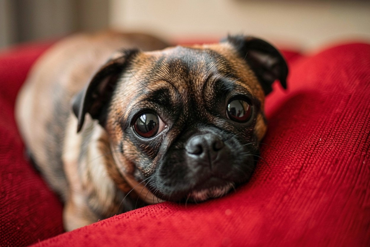 На нашем сайте вы можете скачать JPG файл обоев Мопс с тигровым окрасом на красном диване, и вот почему это важно: другие сайты обрезают края, но у нас остался полный кадр.