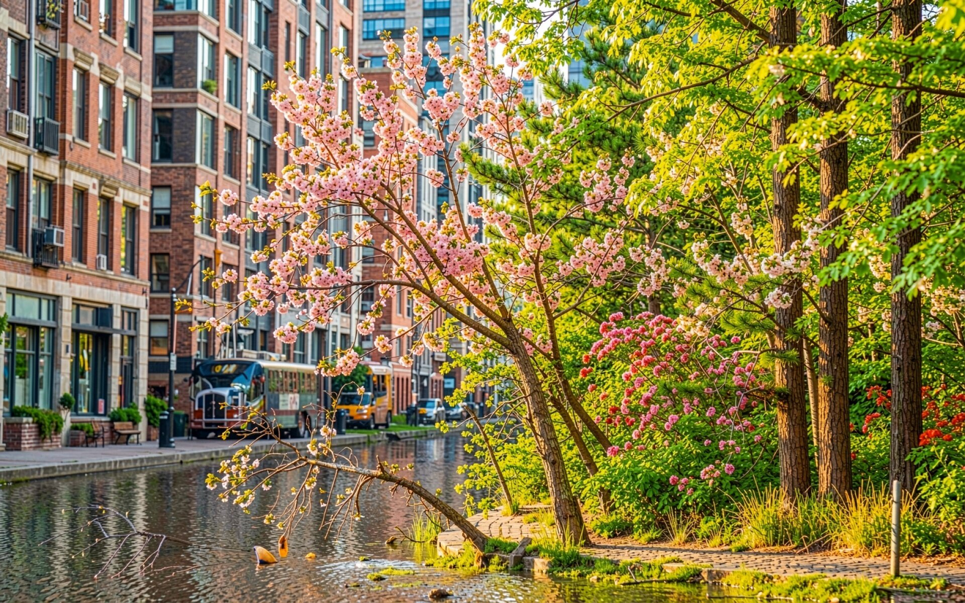 Файл представлен в формате JPEG с глубокой цветопередачей. Изображение обладает высокой плотностью пикселей, что обеспечивает четкость линий архитектуры и текстуры лепестков. Цветовой профиль sRGB гарантирует корректное отображение оттенков розового и зеленого на большинстве современных мониторов.