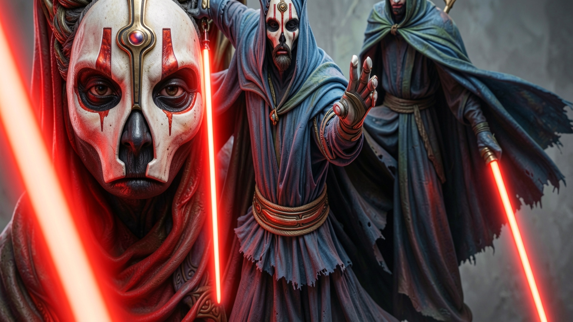Ситхи с красными световыми мечами в темных одеждах обои