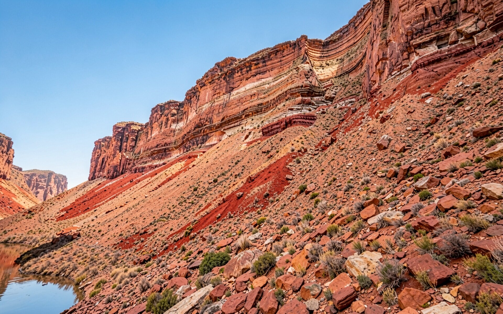 Согласно данным geology.com, красный цвет скал каньона обусловлен окислением железа в составе минералов, что создает характерный гематитовый оттенок при взаимодействии с кислородом и водой. Нажмите кнопку загрузки, чтобы установить эти обои со скалами на ваш ПК или телефон прямо сейчас.