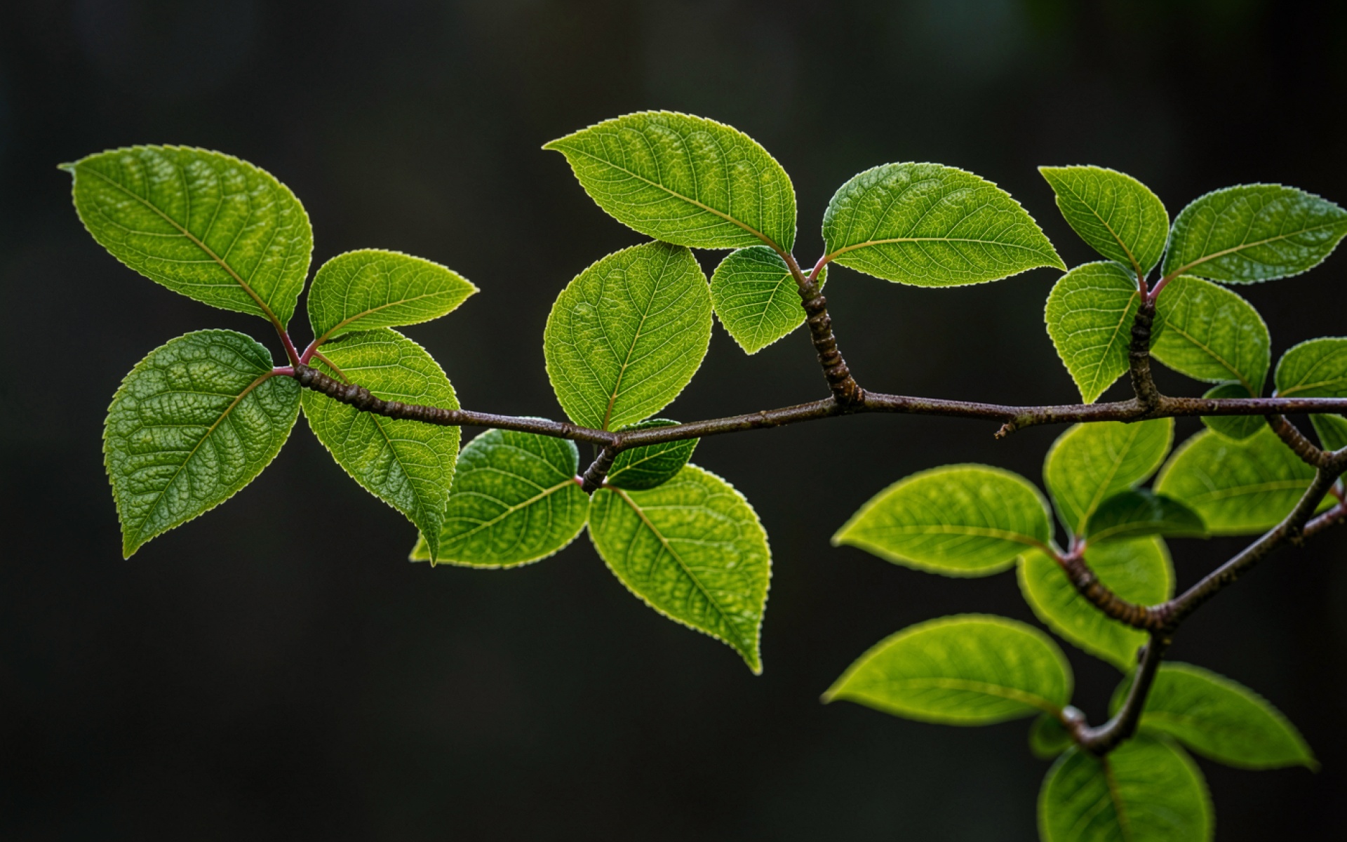Доступны для скачивания JPG обои Зеленые листья на темном фоне макро. Почему стоит скачать их? Полная цветопередача сохранена без потери качества.