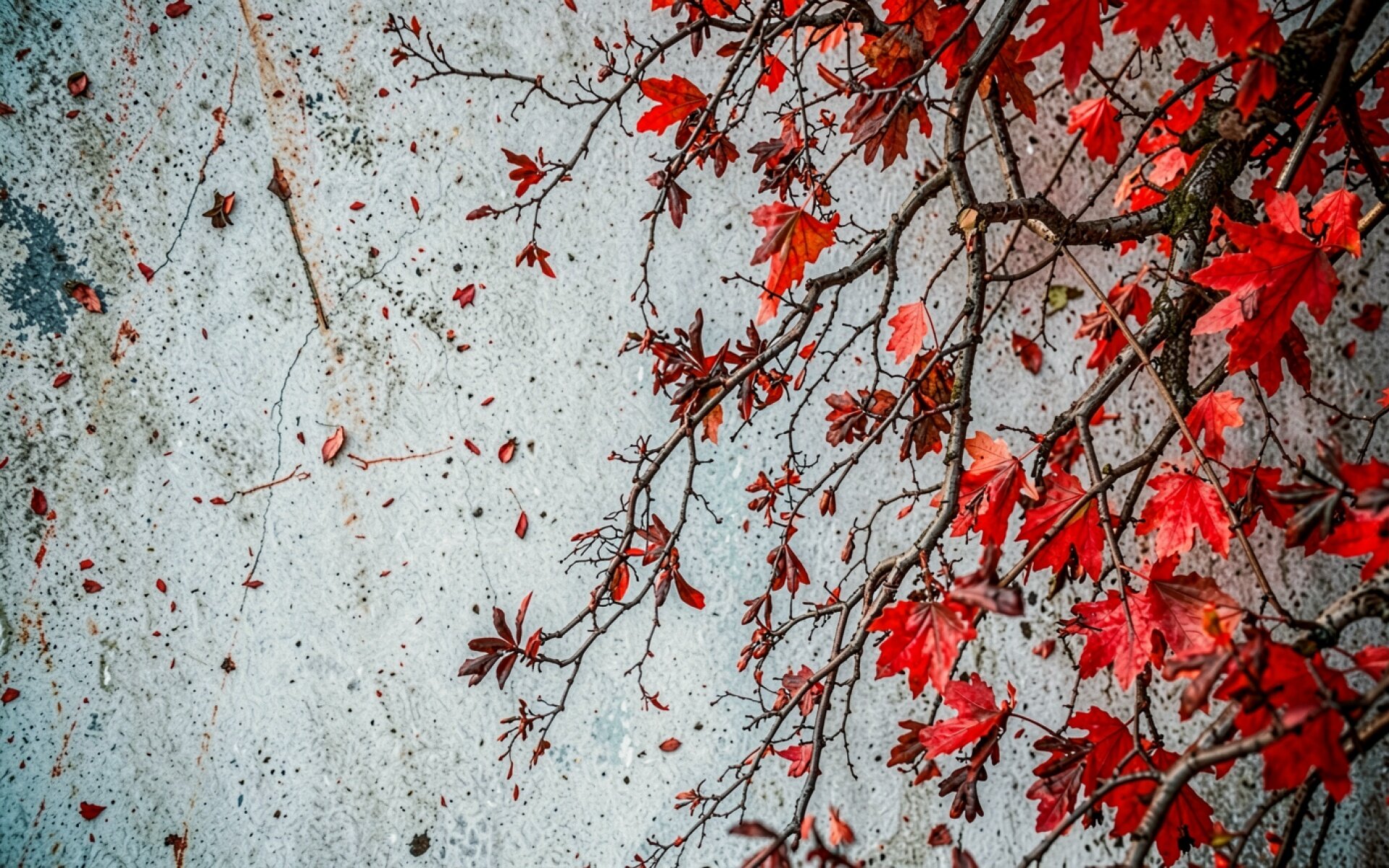 Красные листья клена на сером бетонном фоне обои