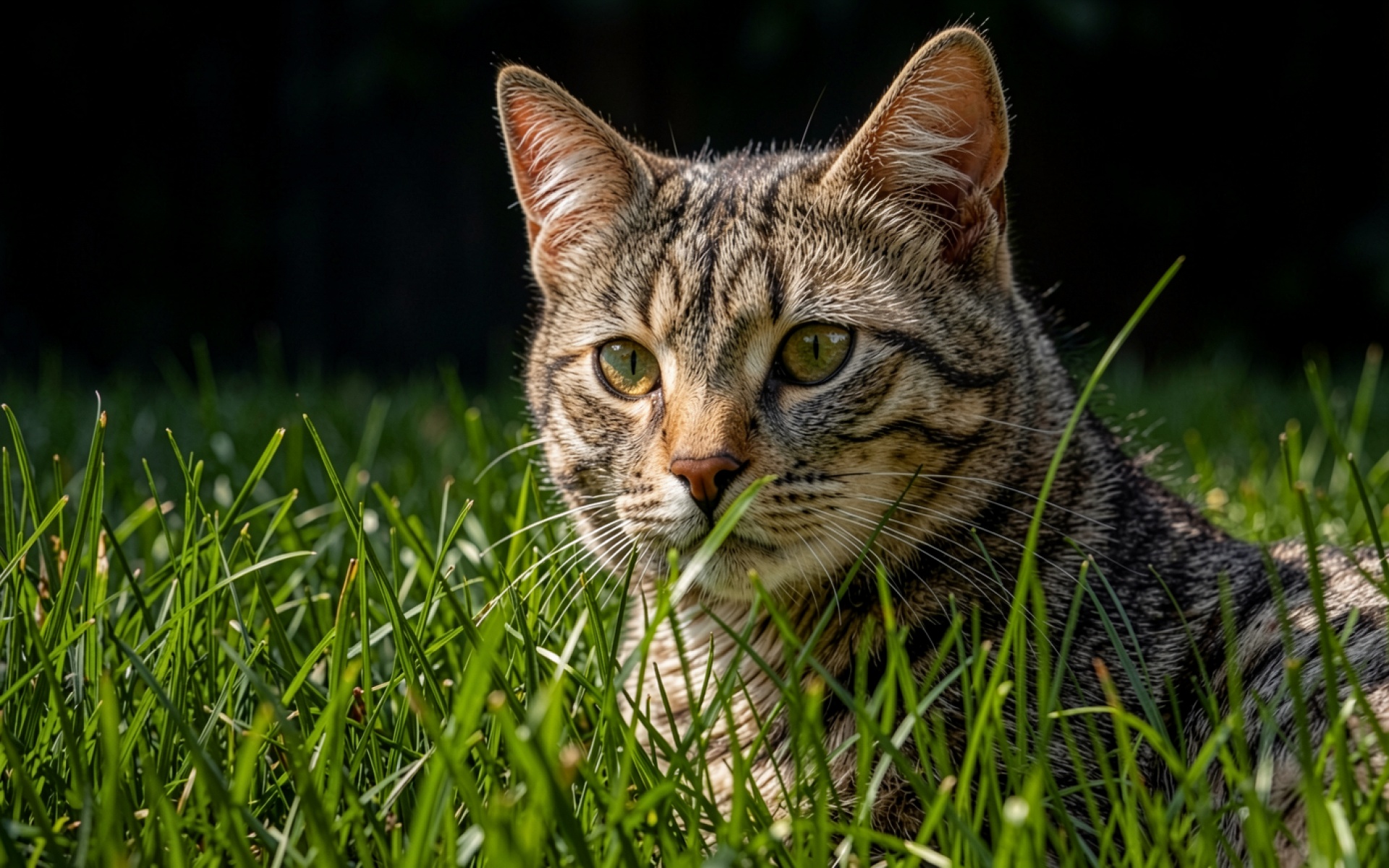 Наш ресурс дает вам возможность скачать обои Полосатый кот в зеленой траве при солнечном свете в JPG, и причина в том, что другие сайты обрезают края, но у нас полный кадр.