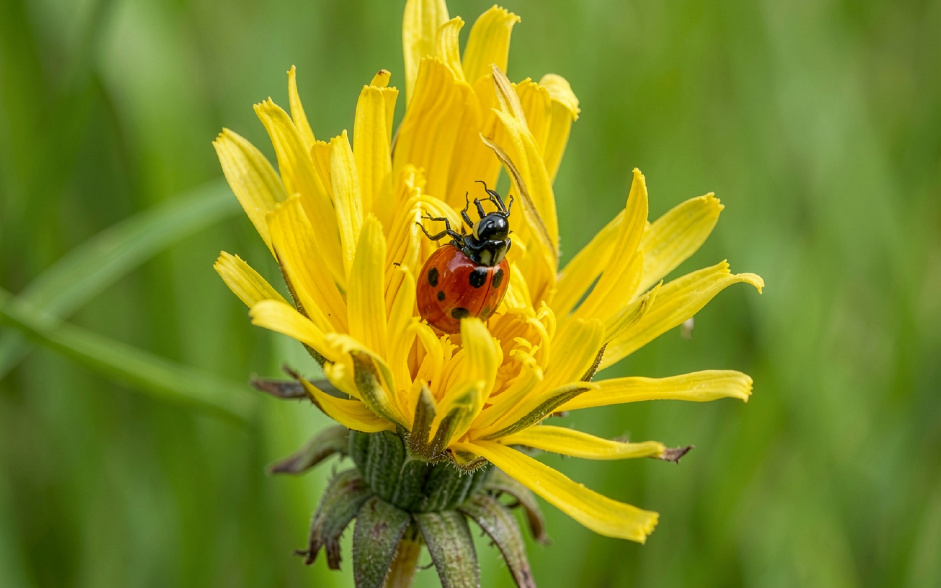 На нашем сайте вы можете скачать обои Божья коровка на желтом цветке в траве в JPG для ПК или телефона – и вот почему: полная цветопередача сохраняется без потери качества.