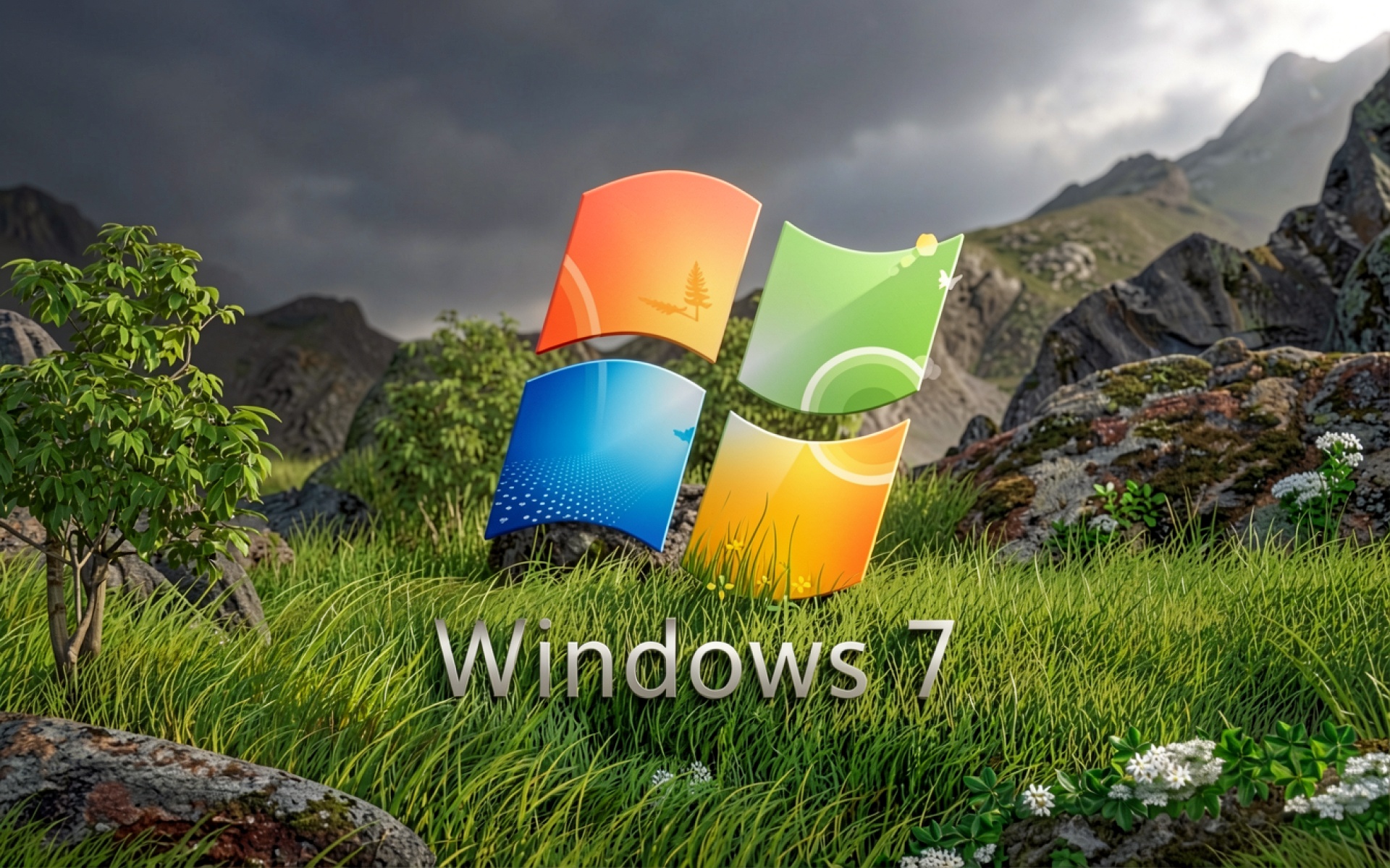 Наш ресурс дает вам возможность скачать обои 'Логотип Windows 7 в зеленом горном пейзаже' в JPG, и причина в том, что там нет полос градиента из-за низкого битрейта.