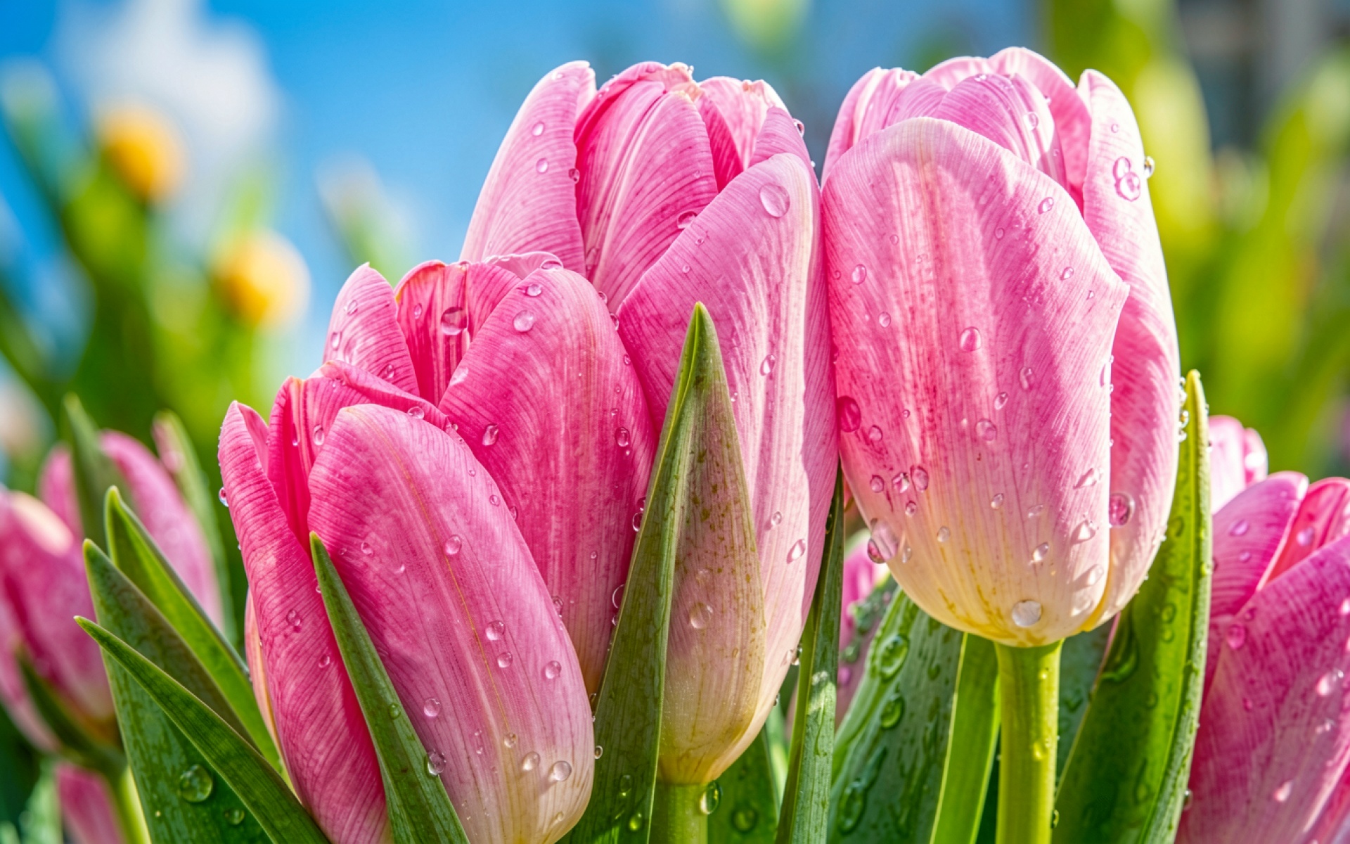 Розовые тюльпаны с каплями росы утром обои