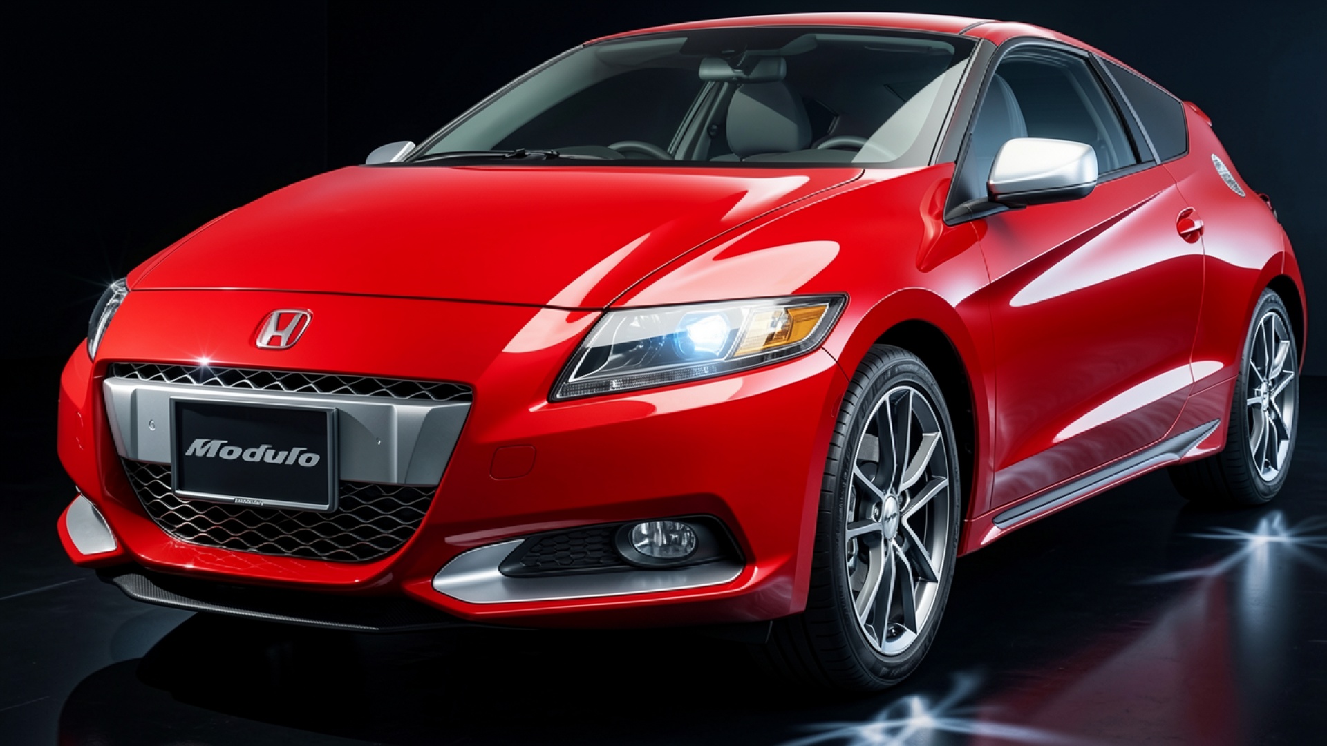 Загрузка JPG обоев Красный автомобиль Honda CR-Z в темной студии с нашего сайта необходима, потому что полная цветопередача сохраняется без потери качества.
