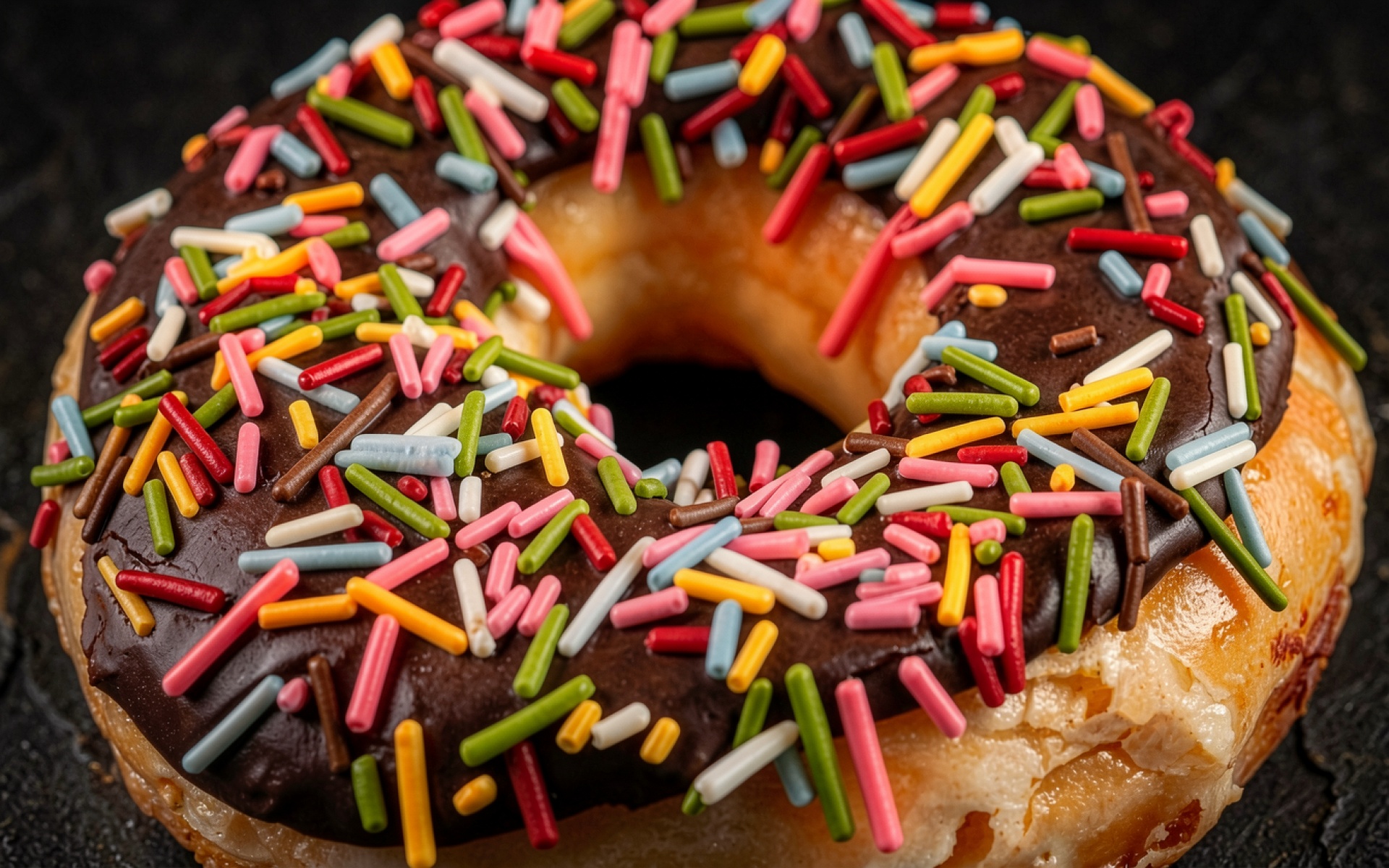 Пончик с шоколадной глазурью и цветной посыпкой обои