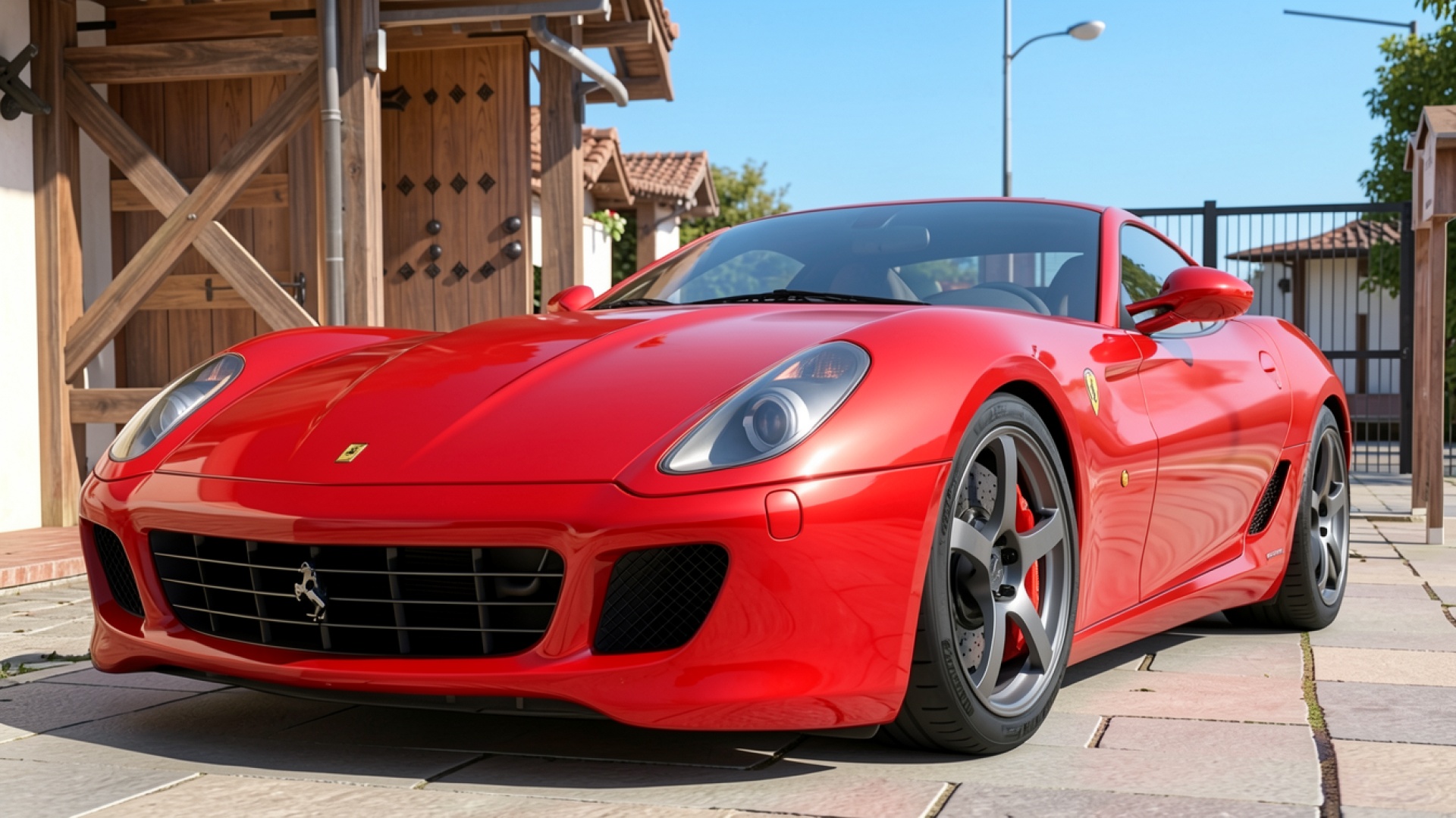 Наш сайт предлагает скачать обои Красный спорткар Ferrari на фоне деревянного дома в JPG, и причина проста: изображение подверглось минимальному сжатию, что позволило сохранить все детали