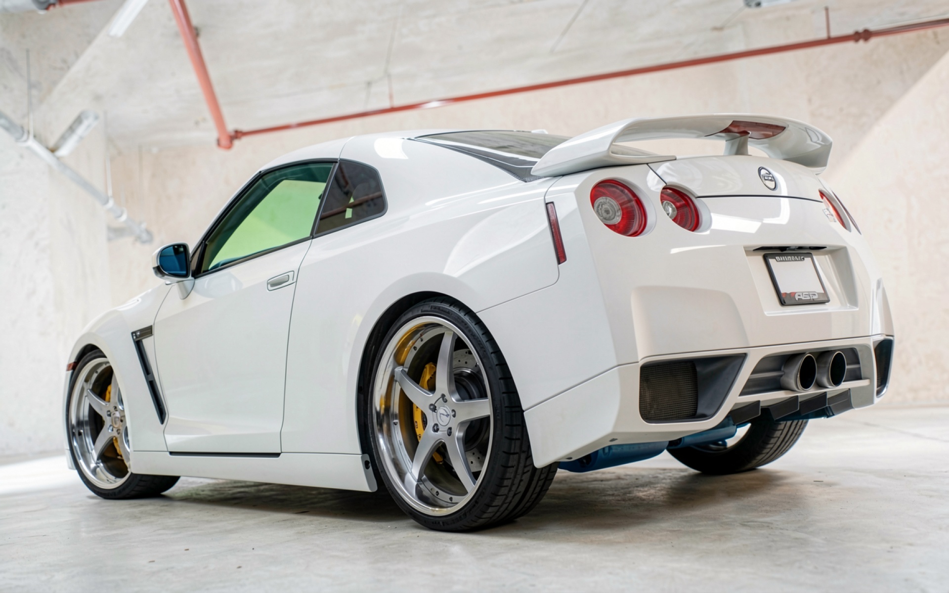 Белый спортивный автомобиль Nissan GT-R в гараже обои