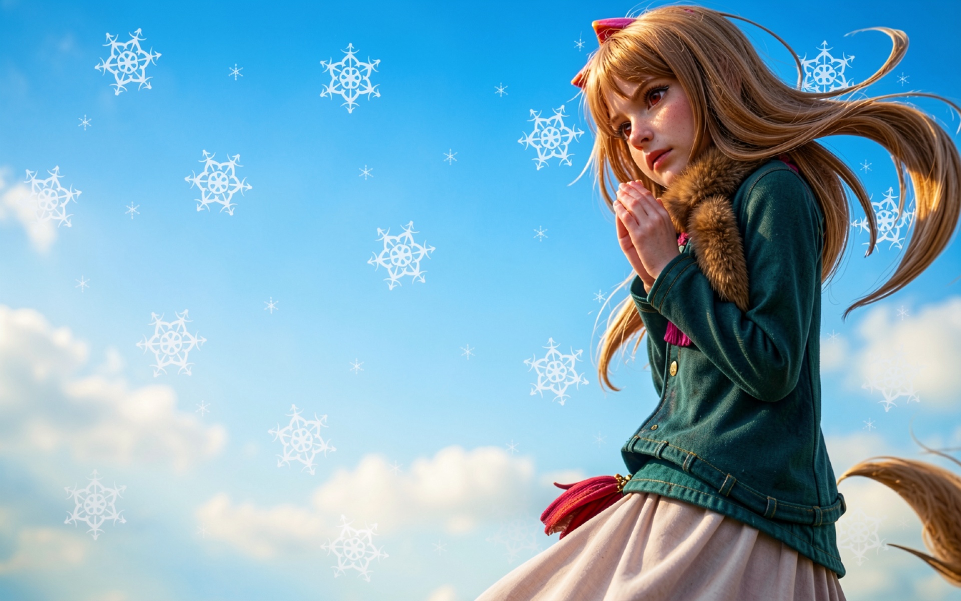 Наш ресурс дает вам возможность скачать обои Аниме девушка в зеленом пальто среди снежинок в JPG, и причина в том, что изображение подверглось минимальному сжатию с сохранением деталей.