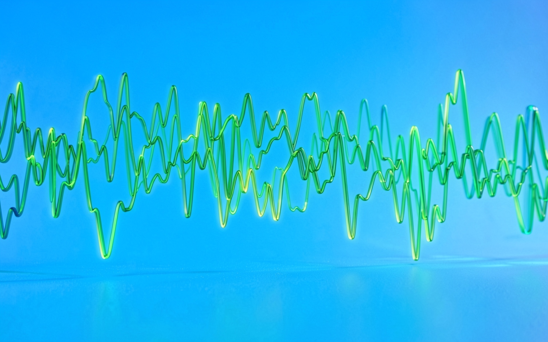 Зеленая цифровая звуковая волна на голубом фоне обои