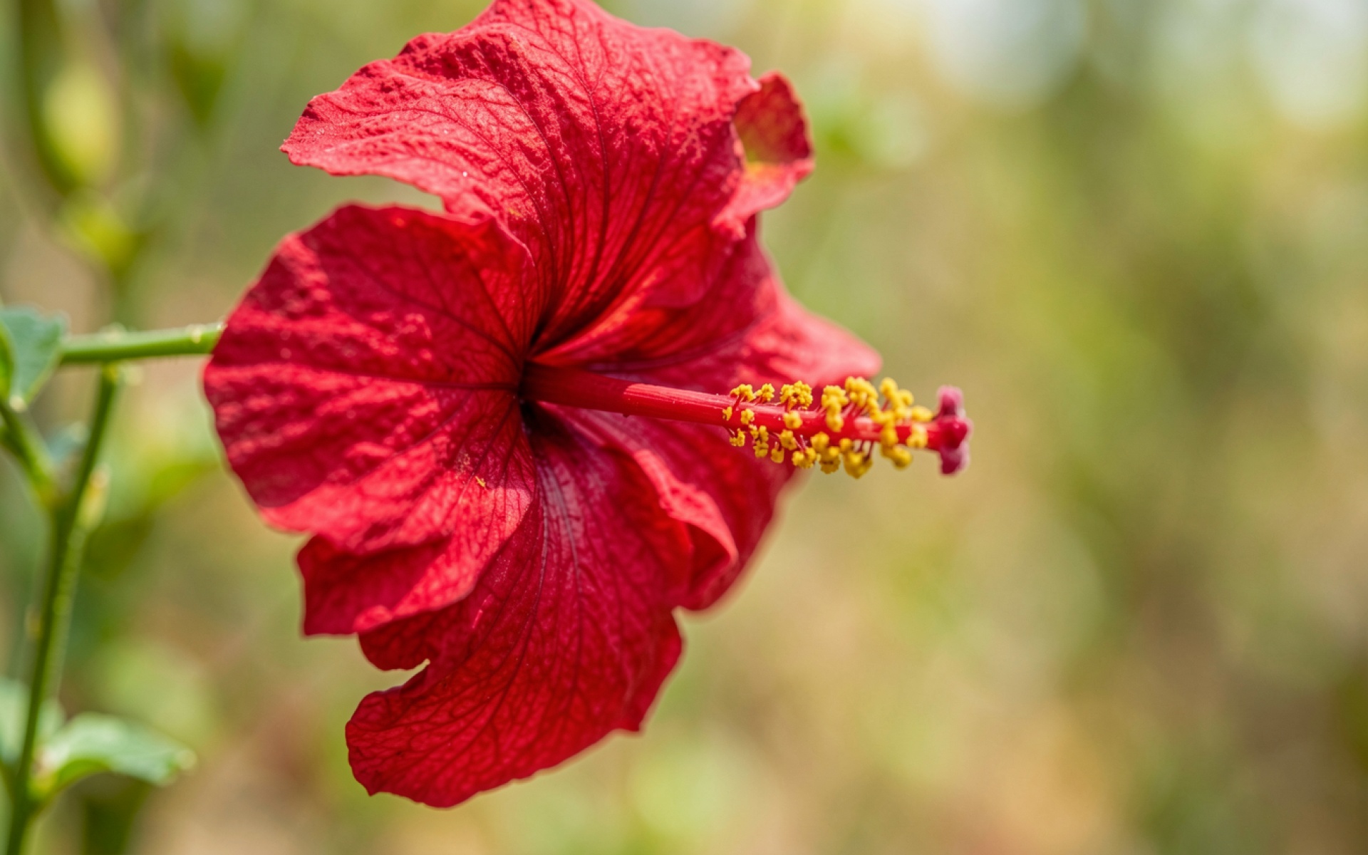 Красный цветок гибискуса на размытом зеленом фоне обои