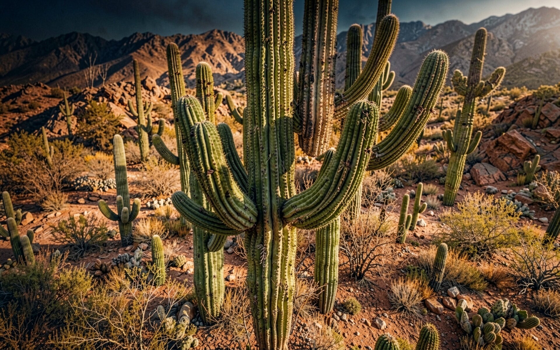 Наш сайт предлагает скачать обои Кактусы сагуаро в пустыне при закатном свете в JPG, и причина проста: другие сайты обрезают края, но у нас полный кадр.