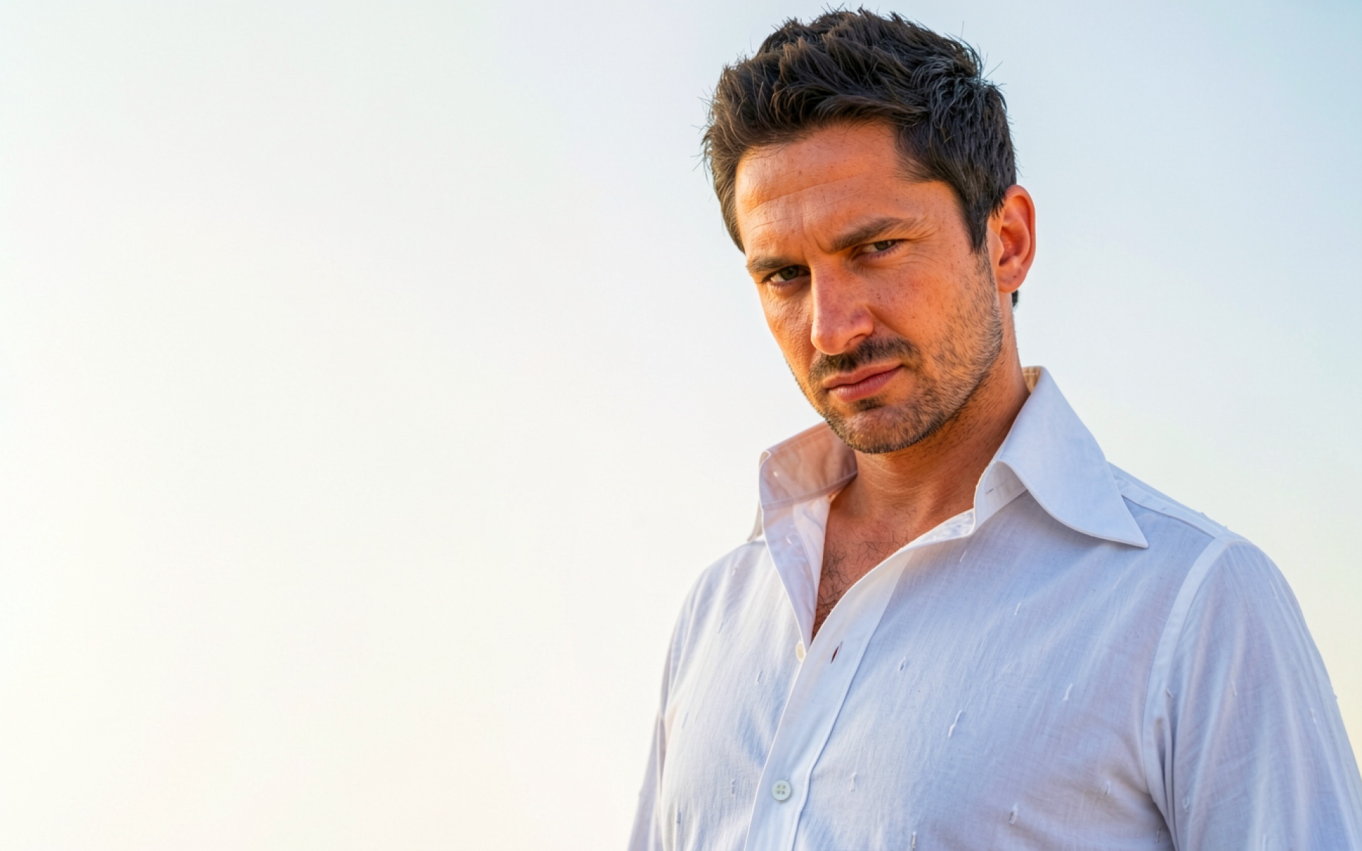 Согласно данным из psychologytoday.com, белый цвет одежды подсознательно воспринимается как символ чистоты и открытости, что в сочетании с прямым взглядом создает образ уверенности и надежности. Нажмите кнопку скачивания, чтобы установить эти обои с мужчиной на ваш ПК или телефон прямо сейчас.