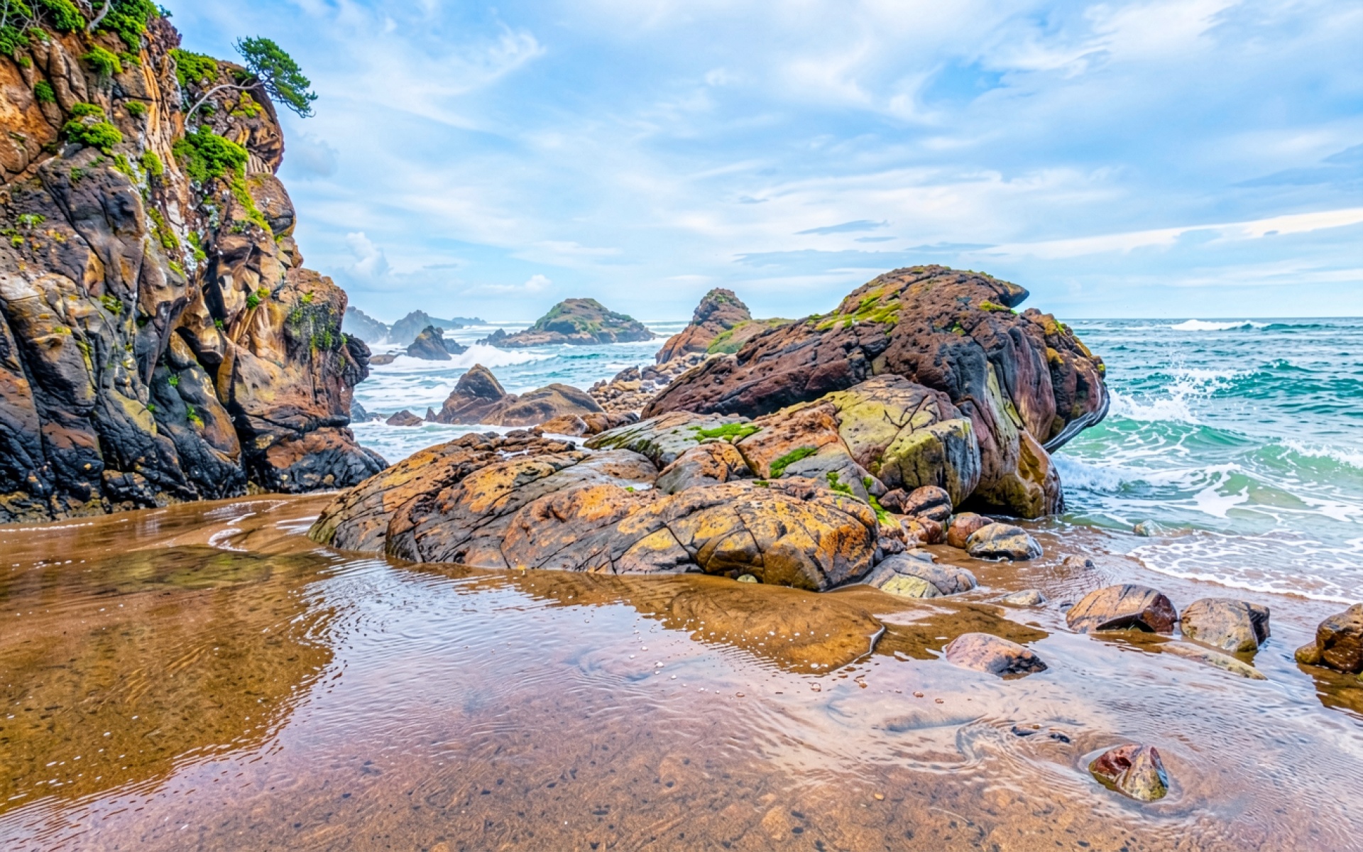 Согласно данным geology.com, базальтовые и песчаниковые породы прибрежных зон подвергаются постоянному химическому выветриванию под воздействием соленой воды, что формирует уникальный рельеф с острыми гранями и пористой структурой. Нажмите кнопку скачивания, чтобы установить эти обои со скалистым берегом на ваш ПК или телефон прямо сейчас.
