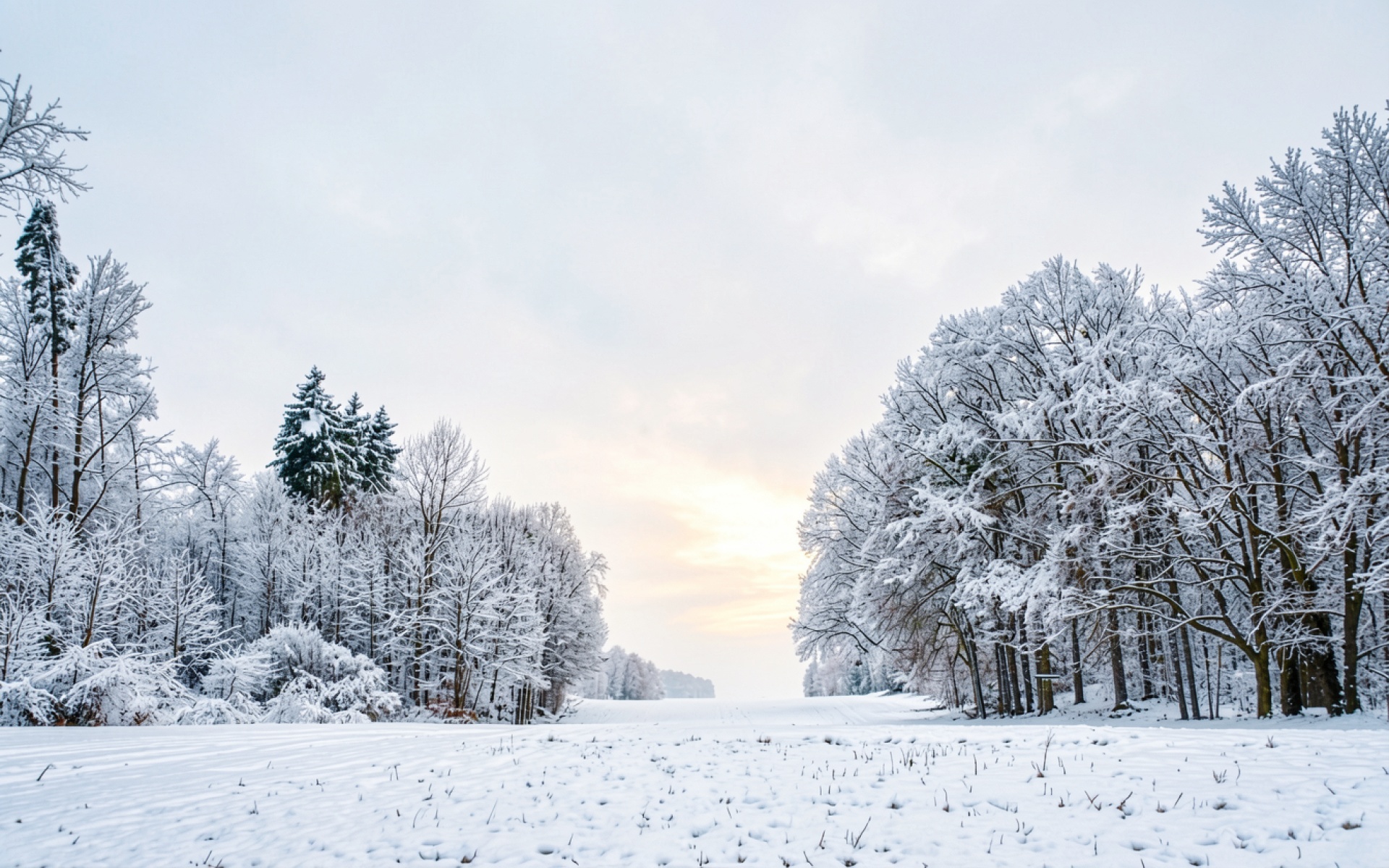 Зимний заснеженный лес в светлых тонах обои