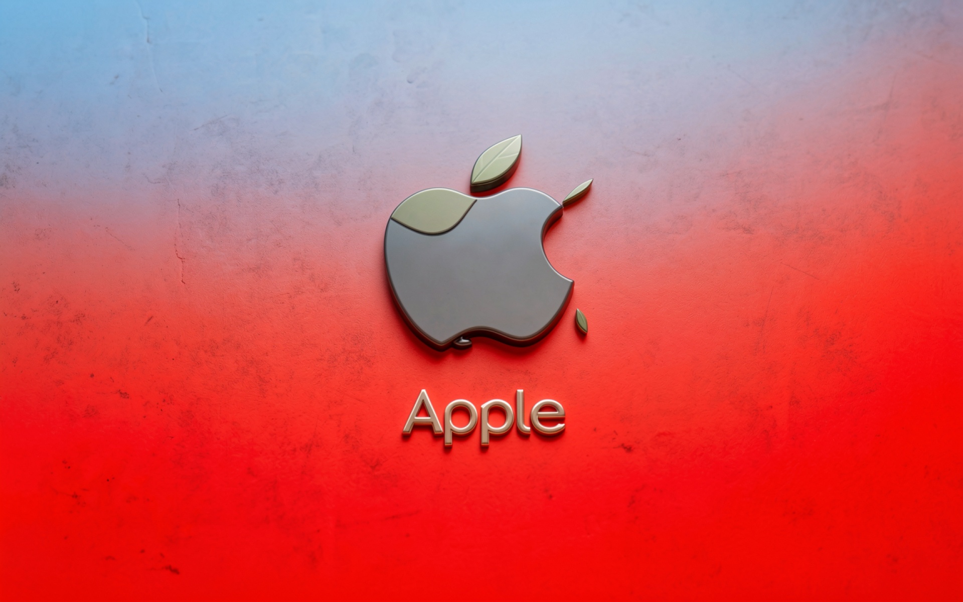 Логотип Apple серый на красном фоне обои