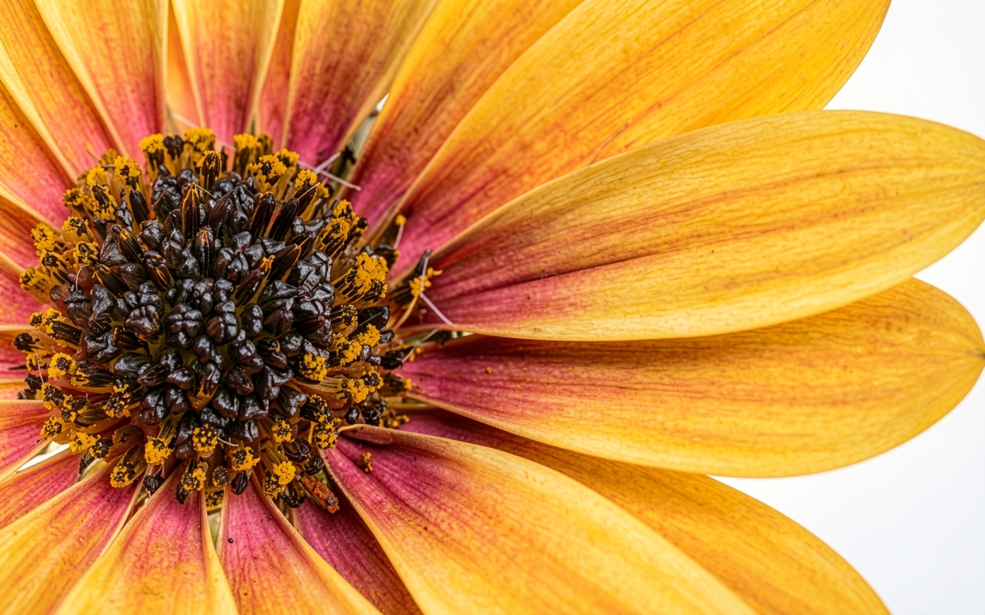 <Изображение детально передает бархатистую текстуру лепестков и зернистую структуру центральной части растения. Мягкий свет создает плавные градиенты от насыщенного желтого к глубокому красному у основания, а четкие тени подчеркивают объем каждого элемента. На сайте предусмотрен удобный предпросмотр перед загрузкой для оценки качества на экране.