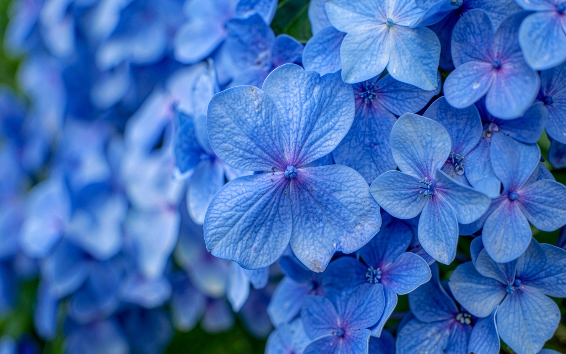 Синие цветы гортензии в макросъемке при дневном свете обои