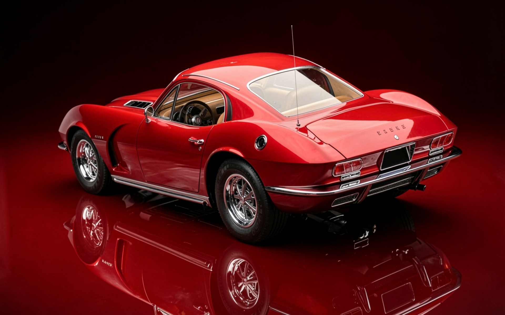 Красный спортивный автомобиль в темной студии обои