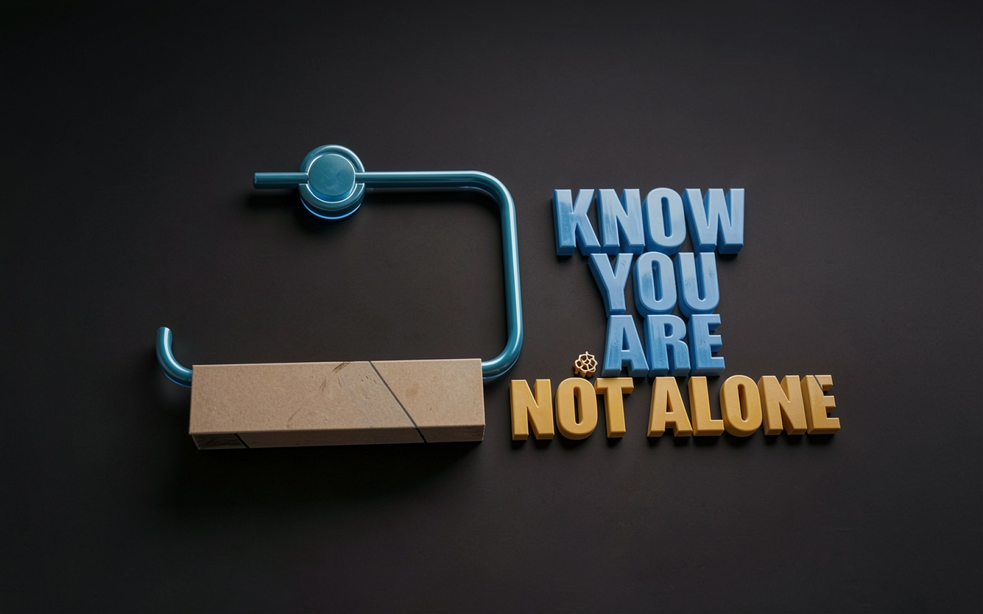 3D надпись Know You Are Not Alone синий желтый цвета