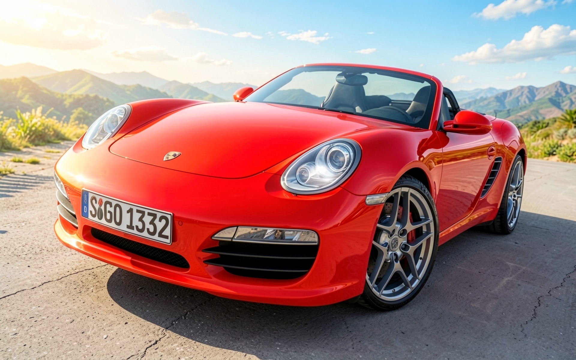 Красный кабриолет Porsche на горной дороге