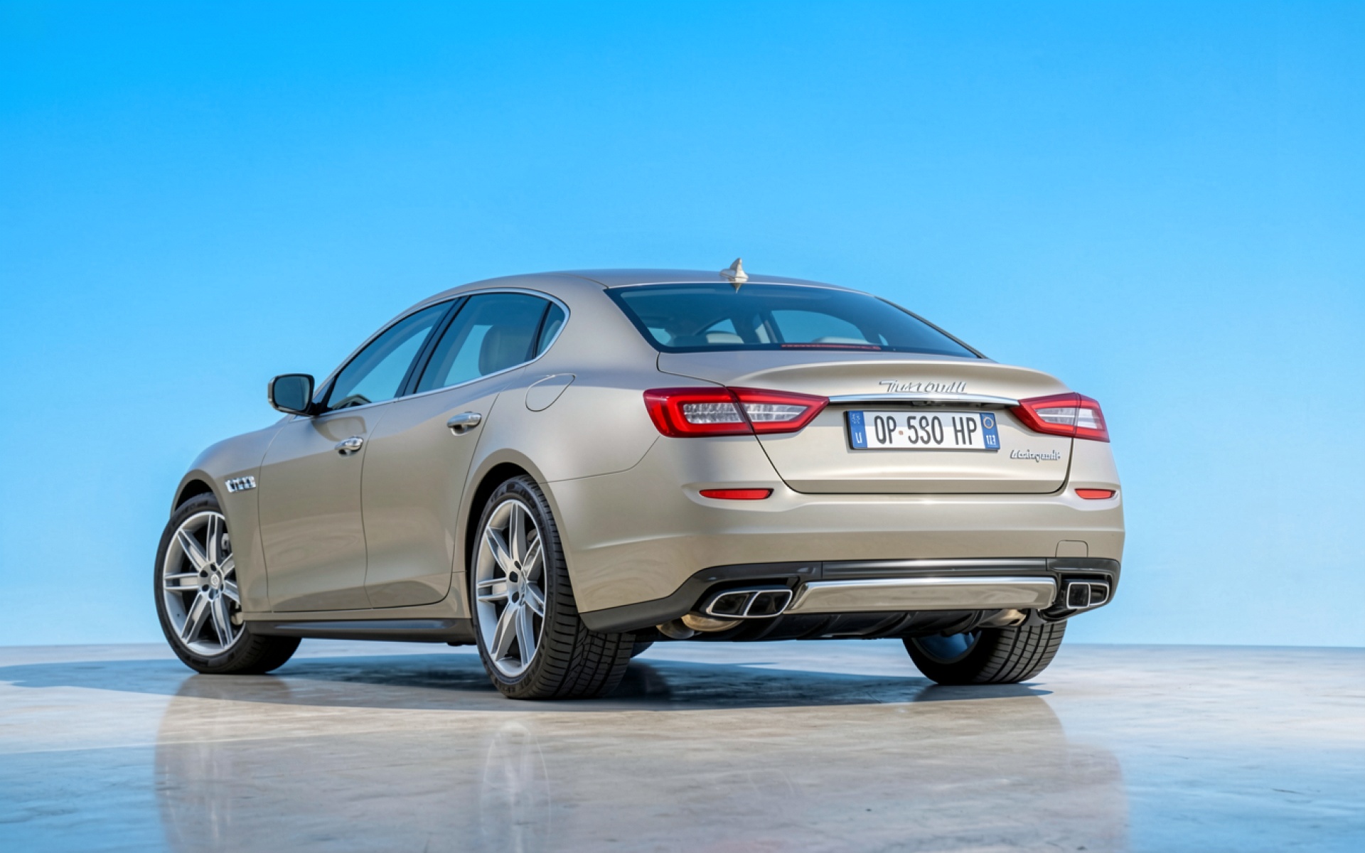 Золотой автомобиль Maserati Quattroporte на светлом фоне