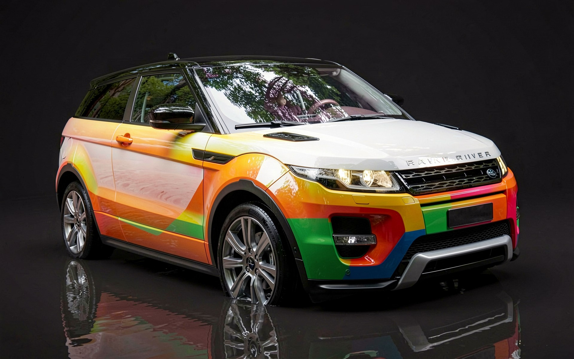 Радужный Range Rover Evoque в темной студии