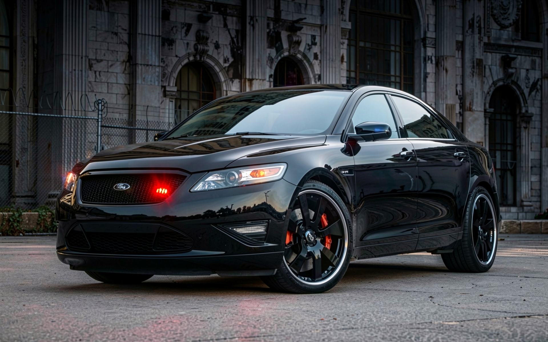 Черный автомобиль Ford Tauro на фоне здания